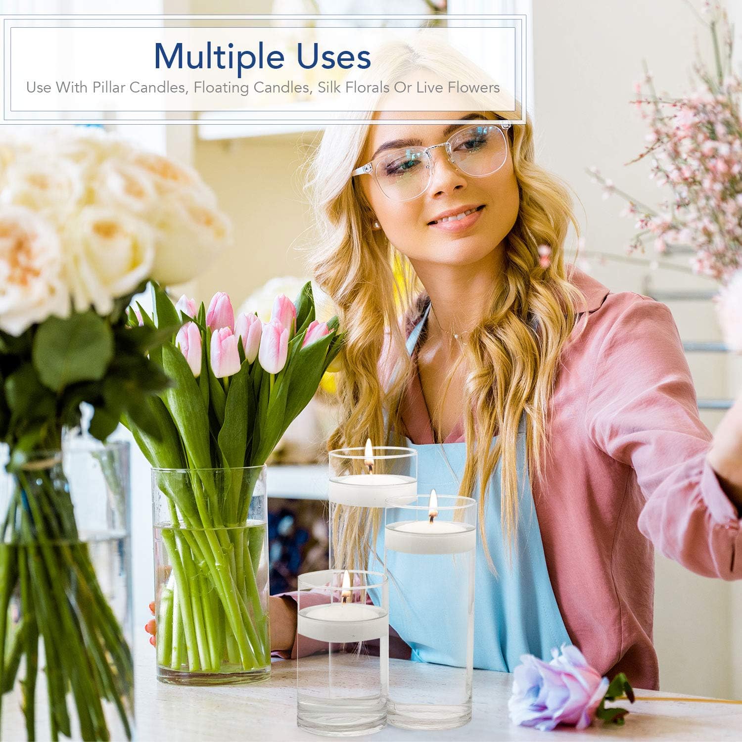 Royal Imports Glass Cylinder Flower Centerpiece Vases Set of 3 - Hurricane Candle Holder Pillar, Floating, Tealights - Use for Floral, Wedding, Home Decor, Holiday Includes 3 Floating Candles