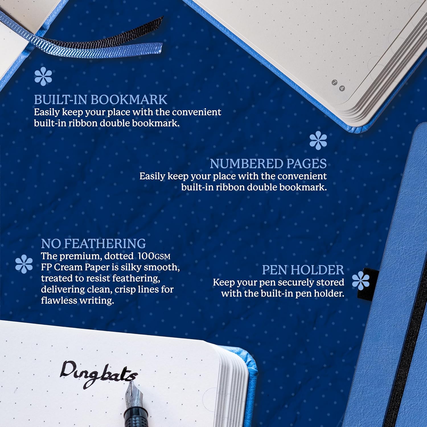 - A MULTI-FACETED JOURNAL: Use this stylish notebook as a space to organise your days and thoughts. A cute notebook that can function as both a secret diary and a to do list pad, keeping your days on track and your mind in check. No matter what kind of day or week it is, you'll find something to fill the dotted pages of this medium notebook with! This handy sized Dingbats writing pad is an excellent companion for jotting down your thoughts