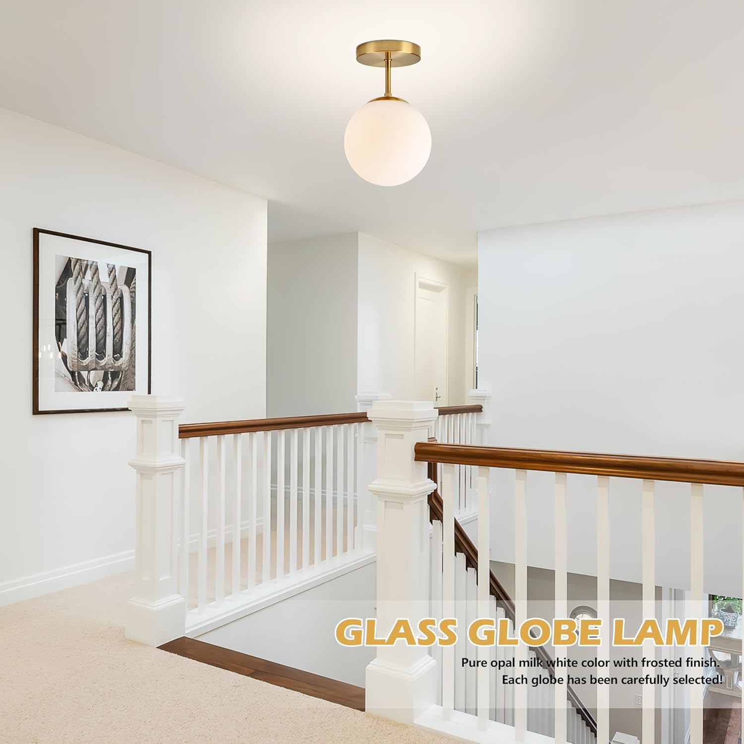 - CLASSIC DESIGN: Classic semi flush mount ceiling light with with matte gold and frosted glass. It creates a modern but simple look. It's suitable for installation in Aisle, Kitchen, Farmhouse, Restaurant, Island, Bedroom, Loft.
