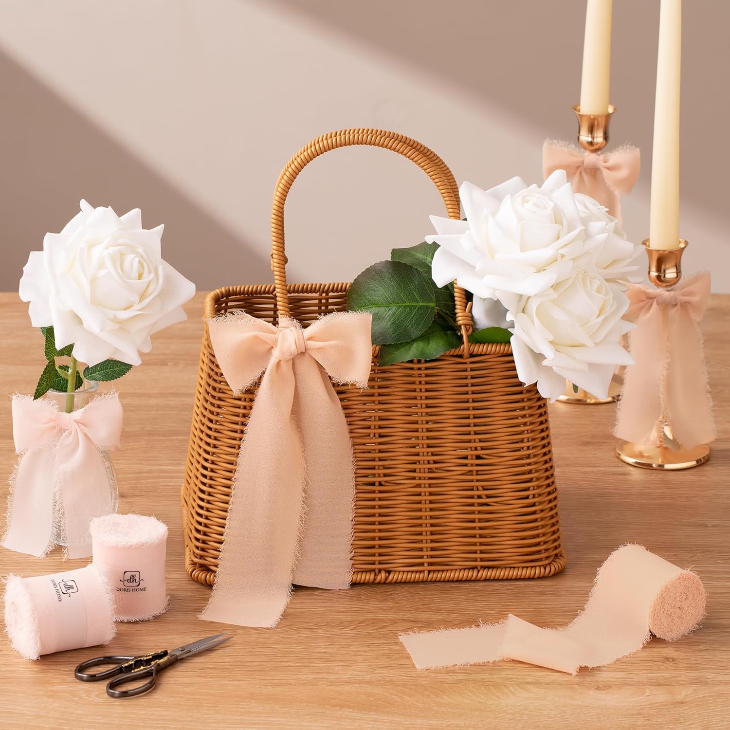 - 【Multiple Applications】This chiffon silk ribbon is great for gift wrapping, wedding decorations, wedding invitations, birthday parties, holiday celebrations, bridal showers, newborn photography props, wedding aisle backgrounds, boutonnieres, flower girl baskets, bouquet wrapping ribbons, Easter baskets, and even Christmas gift wrapping. Its elegant appearance makes it an ideal choice for bohemian or rustic DIY projects.