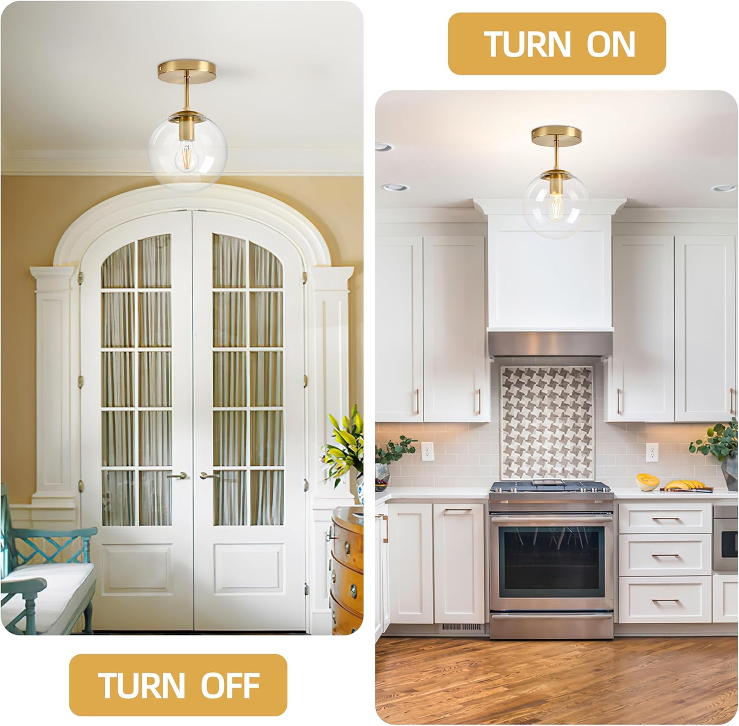 - Bulbs Included & Dimmable: The clear glass globe light fixture designed with 1 x E26 socket with a max power of 60W.When you buy other dimmable bulbs and combine it with a wall dimmer(not included) it can be fully dimmable. so you can use this fixture with confidence.