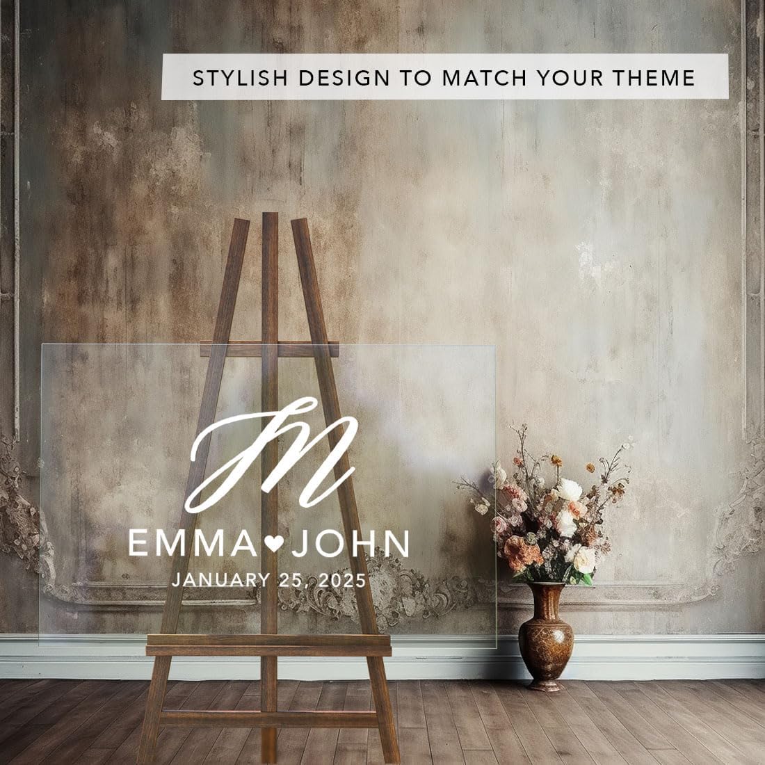 Andaz Press Custom Large Wedding Acrylic Sign, 16 x 24 Inches, Monogram Script, Personalized Sign, Welcome Sign For Modern Wedding Theme