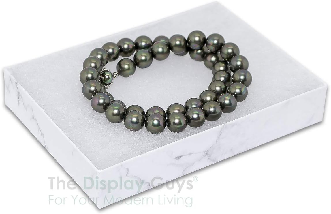 TheDisplayGuys - 25-Pack #53 Kraft Paper Cardboard Gift Boxes/Jewelry Cases w. Cotton Padding & Lid - Marble White - (5.4" x 3.9" x 1.0")