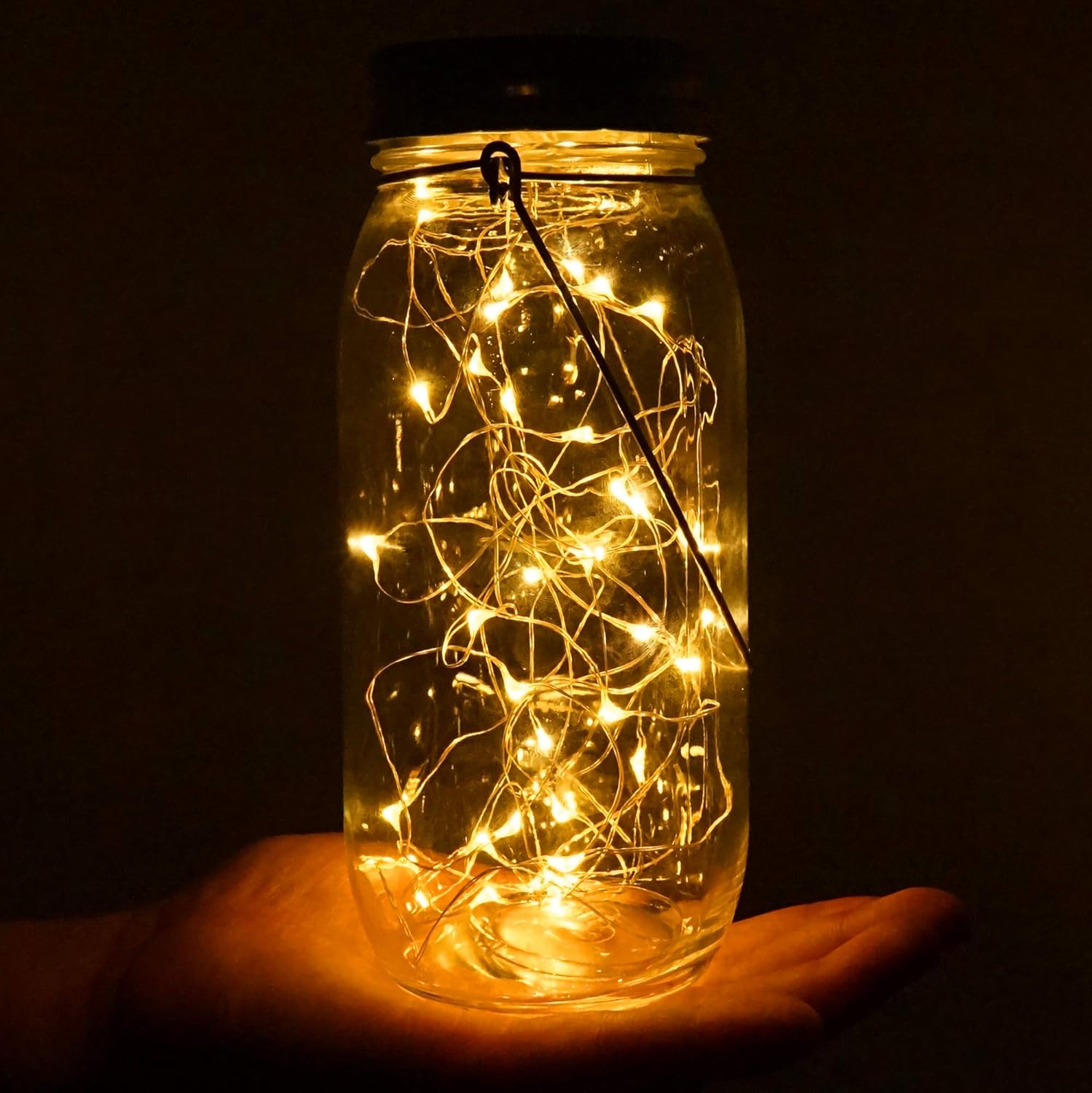 - Widely Use:30 led string lights in a jar like many firefly in the jar ,make a magic atmosphere.These solar fairy lights can be presented in many ways,is good for indoor and outdoor decor,it can be used in wedding,birthdays holidays,Christmas,garden,yard pathway.or putting it on tables,shelves,or hanging the trees, or rustic mason jar wall sconce.it also a great gift to your lovers.
