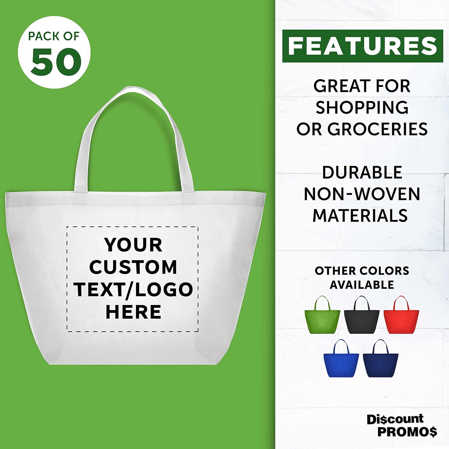 DISCOUNT PROMOS Custom Southern Style Grocery Tote Bags Set of 50 - Personalized Bulk Pack, Reusable Grocery & Shopping Bags - Great for Travel, Carry on Bag, Business Promotions - White - 20"X13"X8"