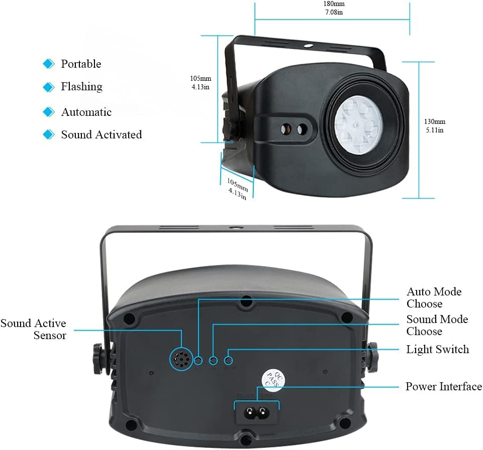- 【Portable LED Decorative Projector Lights Sound Activated】: Plug ON and fun start.It can play through pre-programmed automatic light shows or can dance to the music thanks to the integrated microphone.Adjustable bracket for use on flat surface&ground to illuminate dj facade booth or mounting on the wall&ceiling&truss&setup stand. The compact size is great for moving around as well to creat lighting show.