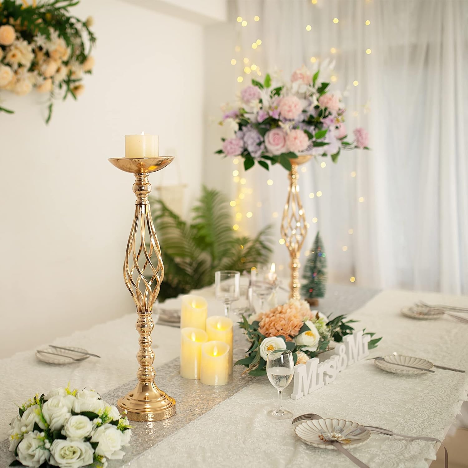 - WEDDING DECORATIONS: These wedding arrangement centerpieces are perfect for your wedding ceremony, wedding party and wedding road-leading. They match fresh flowers, artificial bouquets, flower balls and wedding candles, which can beautifully decorate your wedding moments.