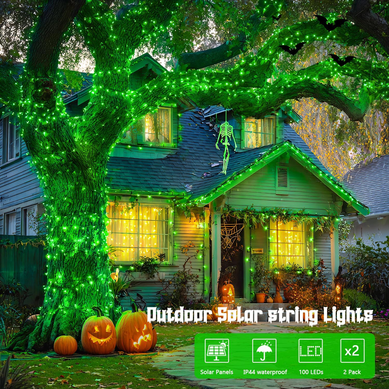 - Green Lights for Halloween Decorations:When the night is immersed in mystery for Halloween, this green Halloween lights is the magic key to light up the festive atmosphere! Without the need for tedious wiring, green Halloween lights can soak up the sun during the day to accumulate energy, and automatically transform into a smart light and shadow spirit at night, weaving a unique holiday secret for your yard, Halloween tree, garden or porch