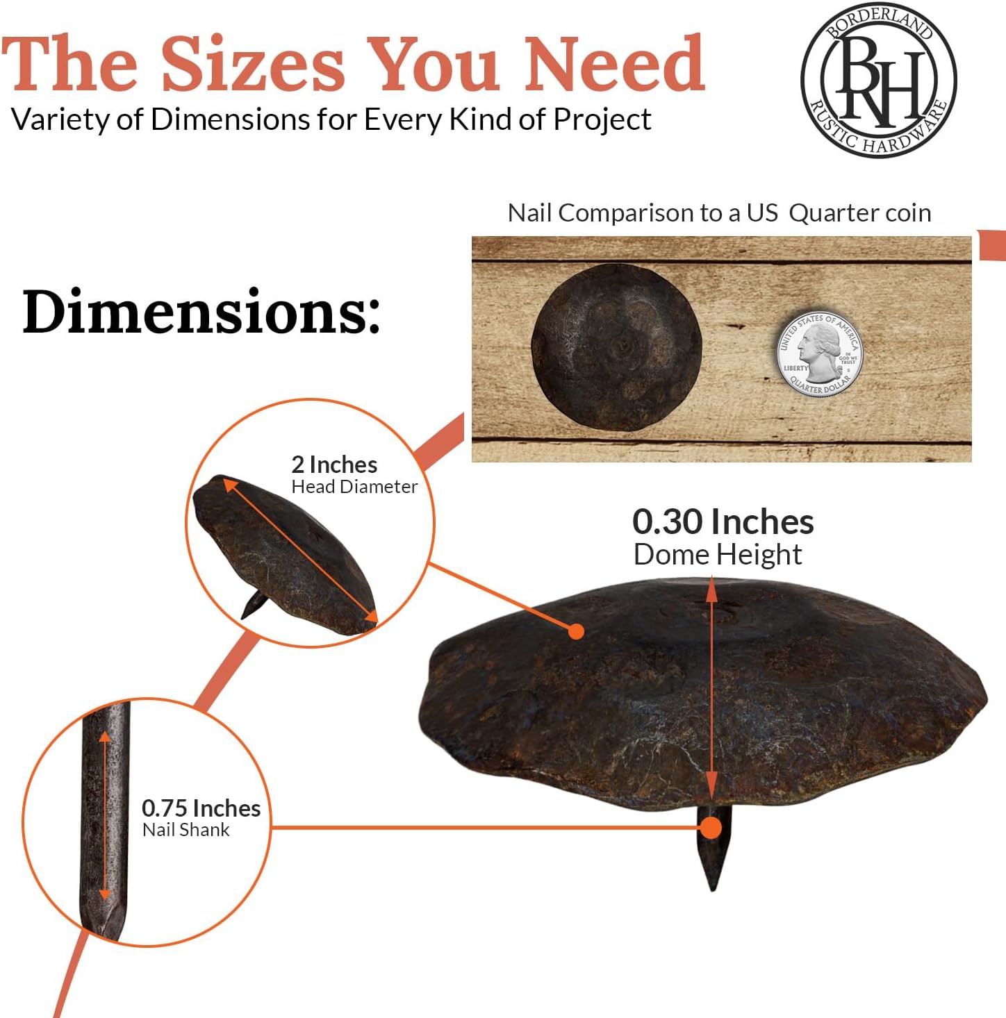 50 Pack 2" Round Head Iron Clavos Decorative Nails – Unfinished – Handmade Rustic Round Fasteners for Farmhouse Shutters, Faux Wood Beams, Barn Doors, Shutters, Gates – Ornamental Wood Accent