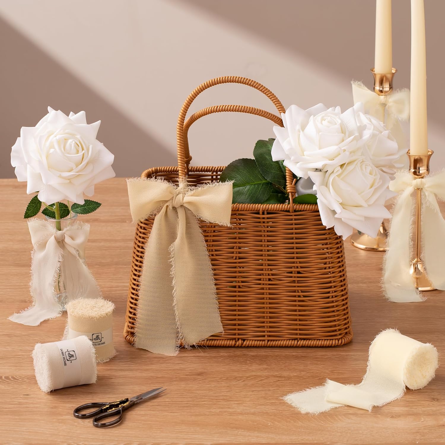 - 【Multiple Applications】This chiffon silk ribbon is great for gift wrapping, wedding decorations, wedding invitations, birthday parties, holiday celebrations, bridal showers, newborn photography props, wedding aisle backgrounds, boutonnieres, flower girl baskets, bouquet wrapping ribbons, Easter baskets, and even Christmas gift wrapping. Its elegant appearance makes it an ideal choice for bohemian or rustic DIY projects.