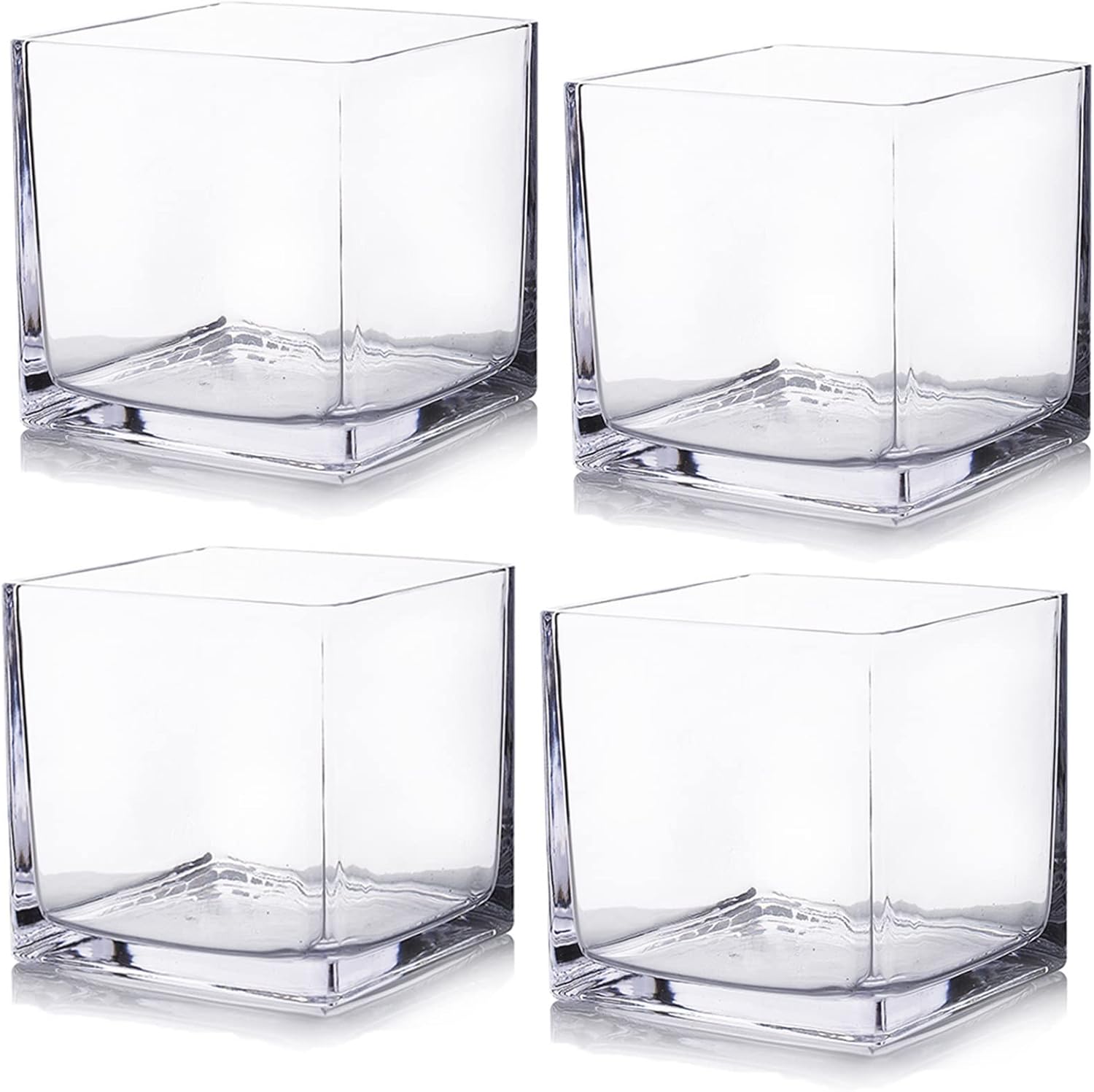 Enova Floral Set of 4 Cube Glass Vase, 6x6X6 Inch Glass Vase for Flowers Planter, Clear Square Glass Vases, Floating Candle Holders, Table Decorative Vase for Wedding Centerpieces, Home Office Décor