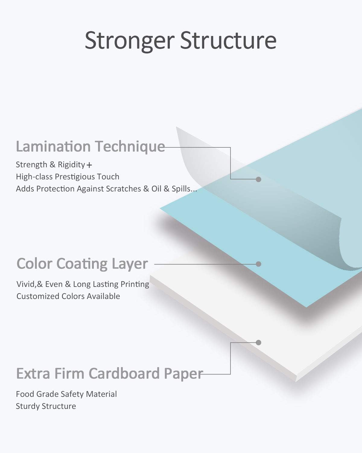 - High Quality:We adopt superior raw material only,and our box quality through the food safty quality text(FDA).Most of the paperboard after printing that you will find inferior Material will give a unhealthy smell, and it will fade after quick friction,Especially pink and black. Our paper was crafted from sustainably sourced, FSC-certified forest, (FSC-C215221) ensuring an eco-friendly choice for your home .