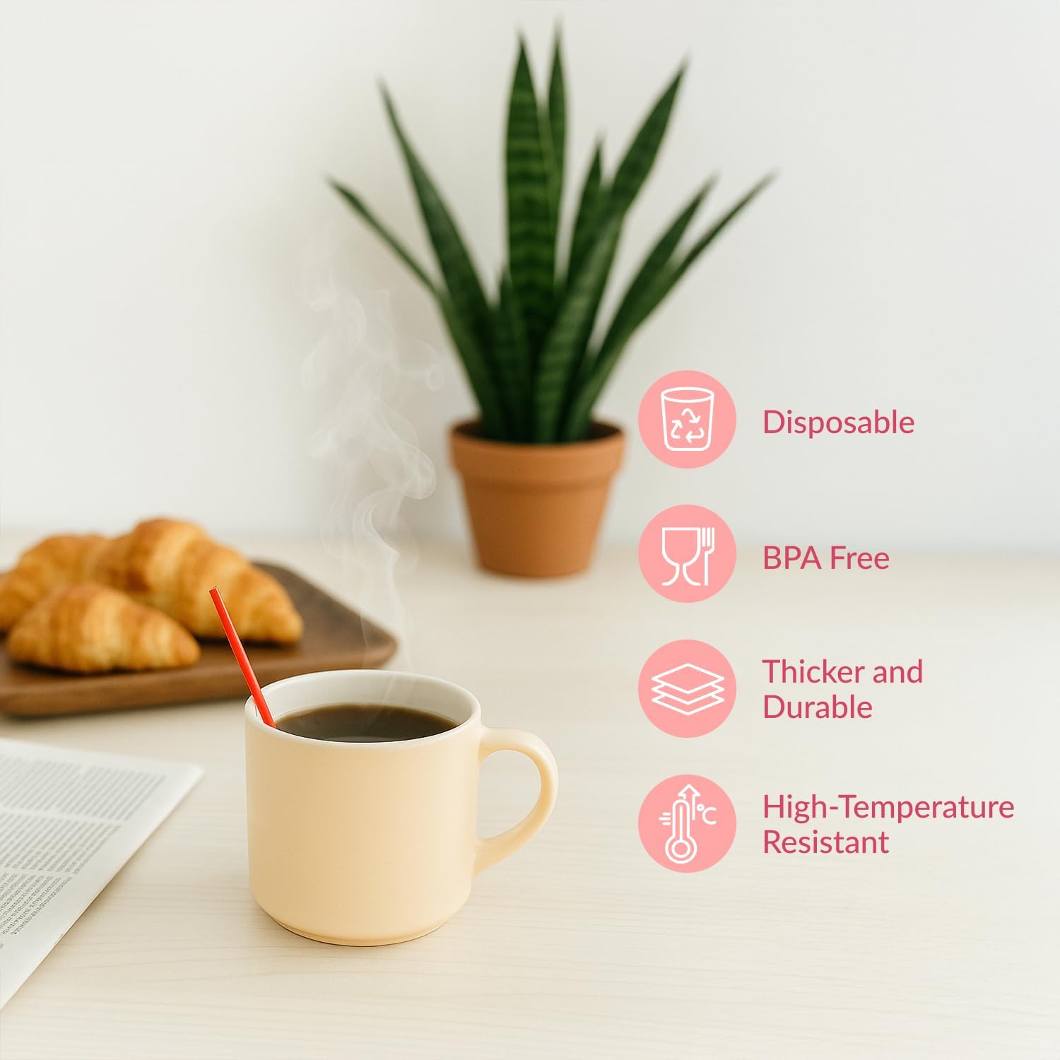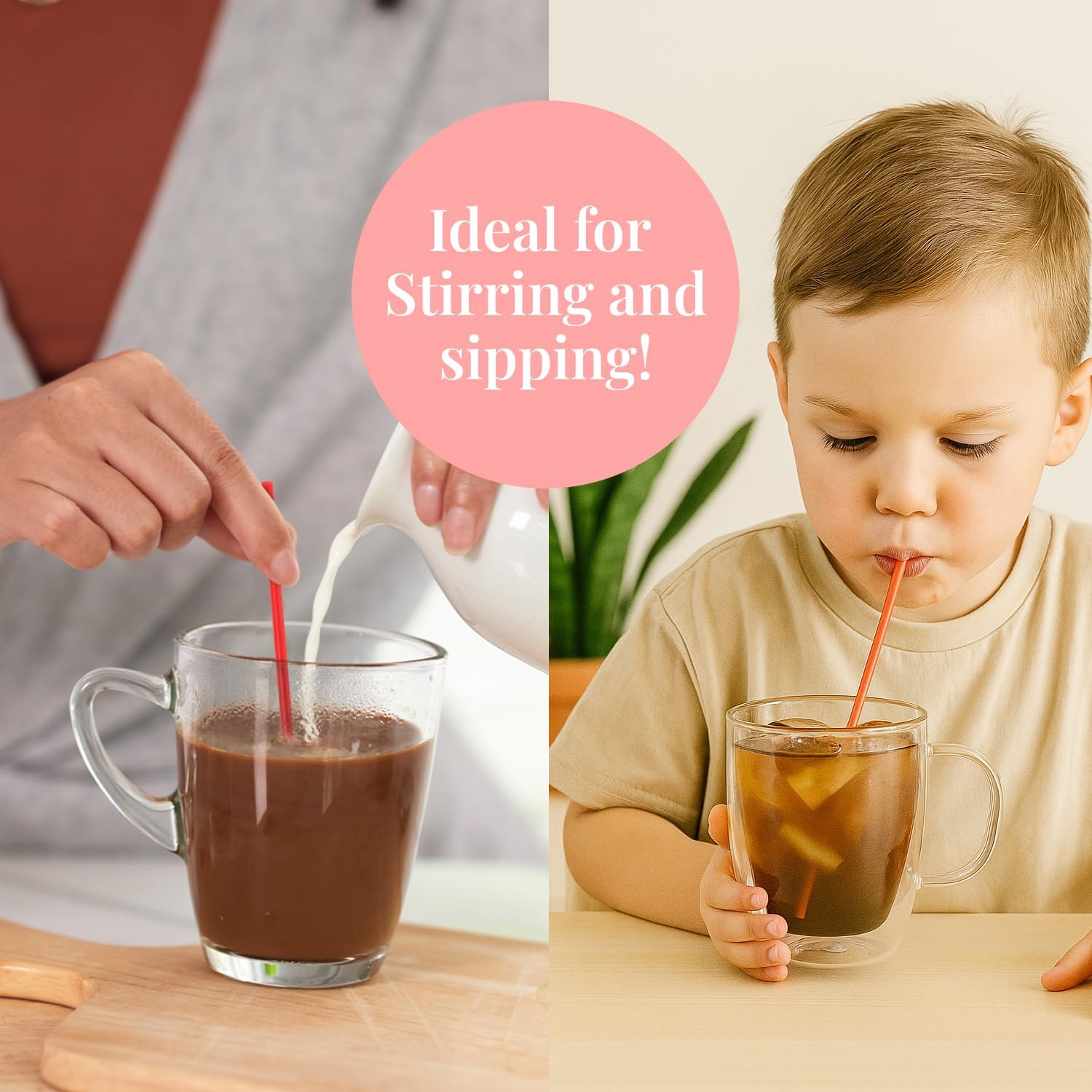 - Durable and Food-Grade: Made from food-safe plastic stirrers for coffee, these hold up to heat or cold; ideal as red stirring straws with a slim design for no-spill mixing and neat presentation