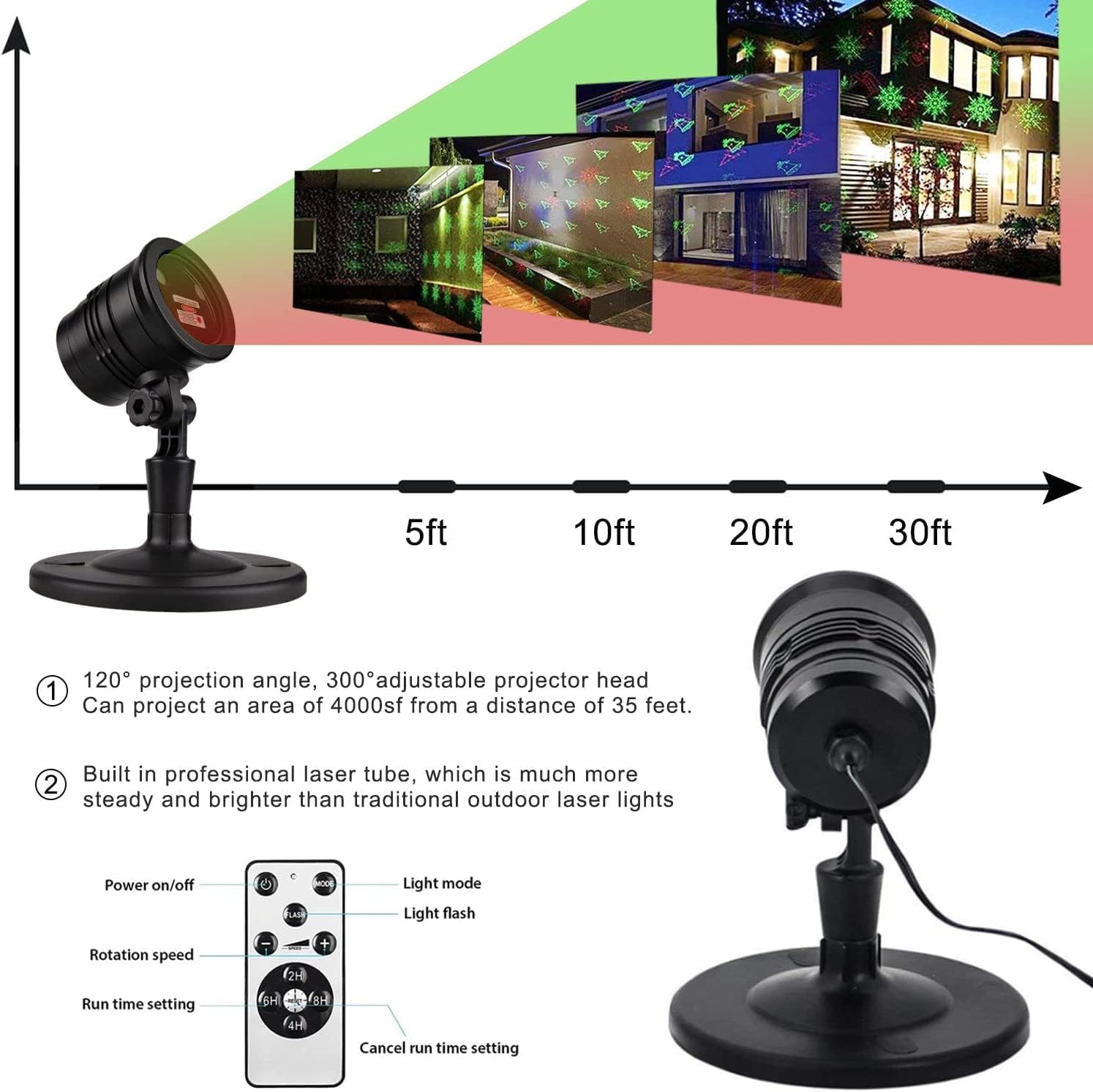 - RF Remote Control: The remote control has longer control distance than others and comes with timing function ensure the laser light can be automatically turned on in the evening and turned off automatically in the day, costs less energy than other string lights.