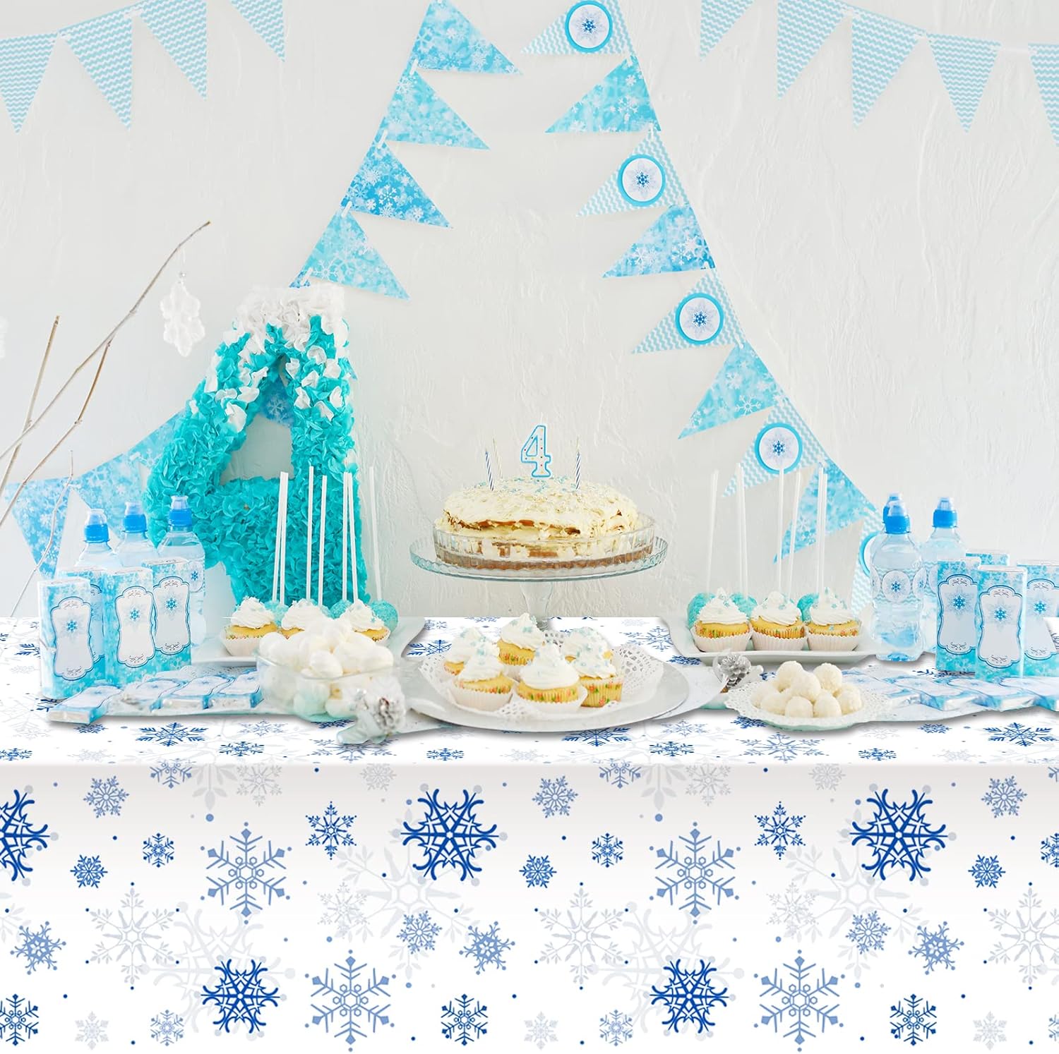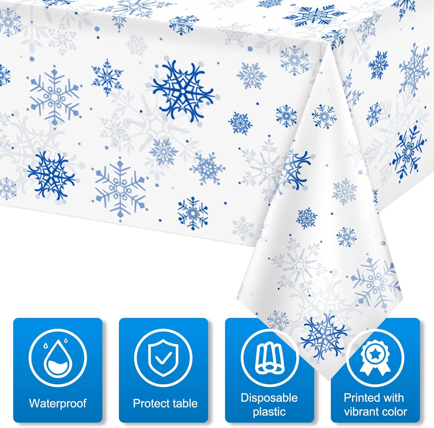 - What will you receive:8 pieces rectangular christmas party tablecloth,all over printed with ice blue snowflake patterns on white backdrop,ideal for decorating your winter holiday and Christmas party supplies and decorations