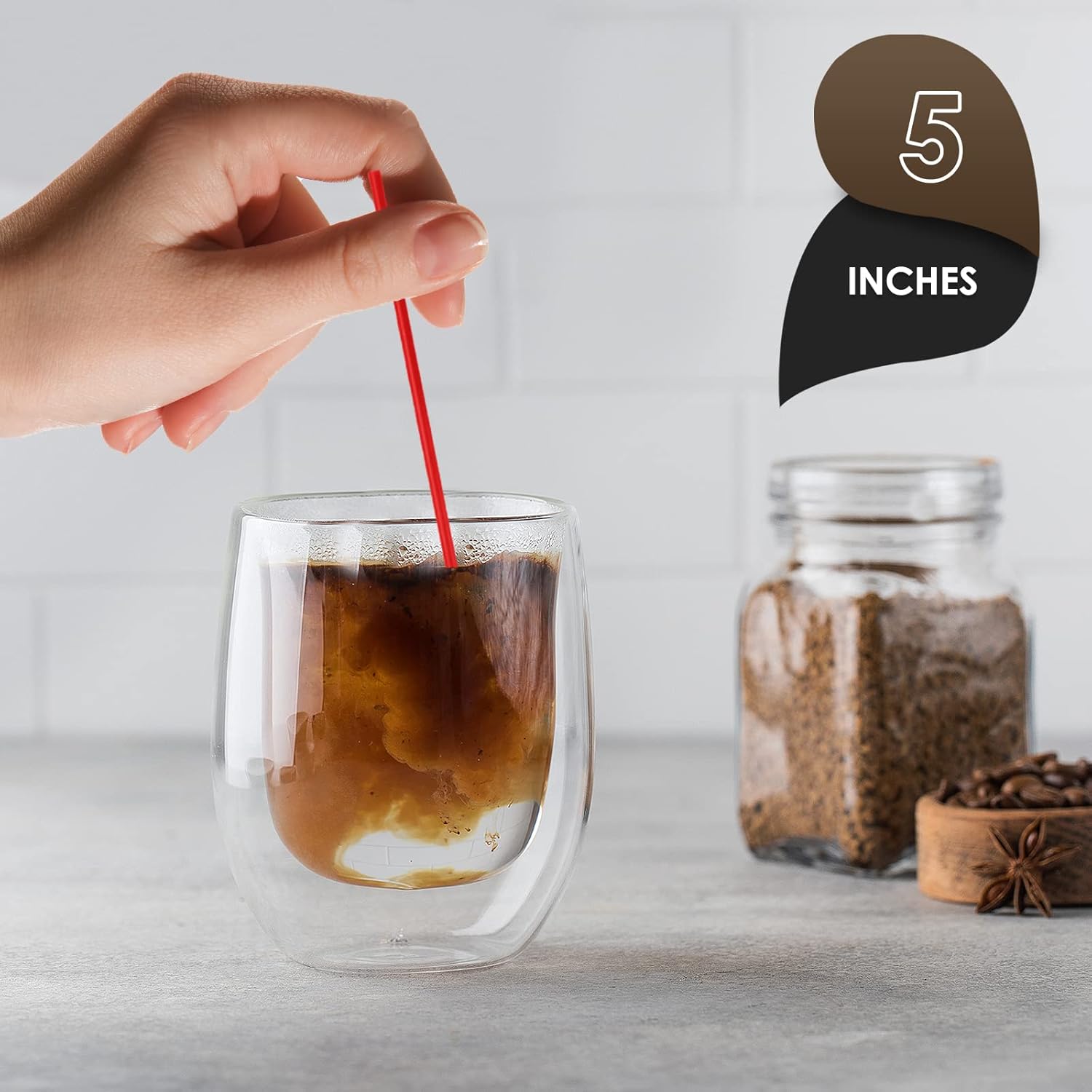 - NO-MESS: Say farewell to messy spills with our red straws, designed to fit any type of glass or tumbler. Perfect for mixing in your coffee creamer, milk, sugar, honey, or syrup, these stir sticks for coffee bar ensure no more sticky fingers or stained tablecloths.
