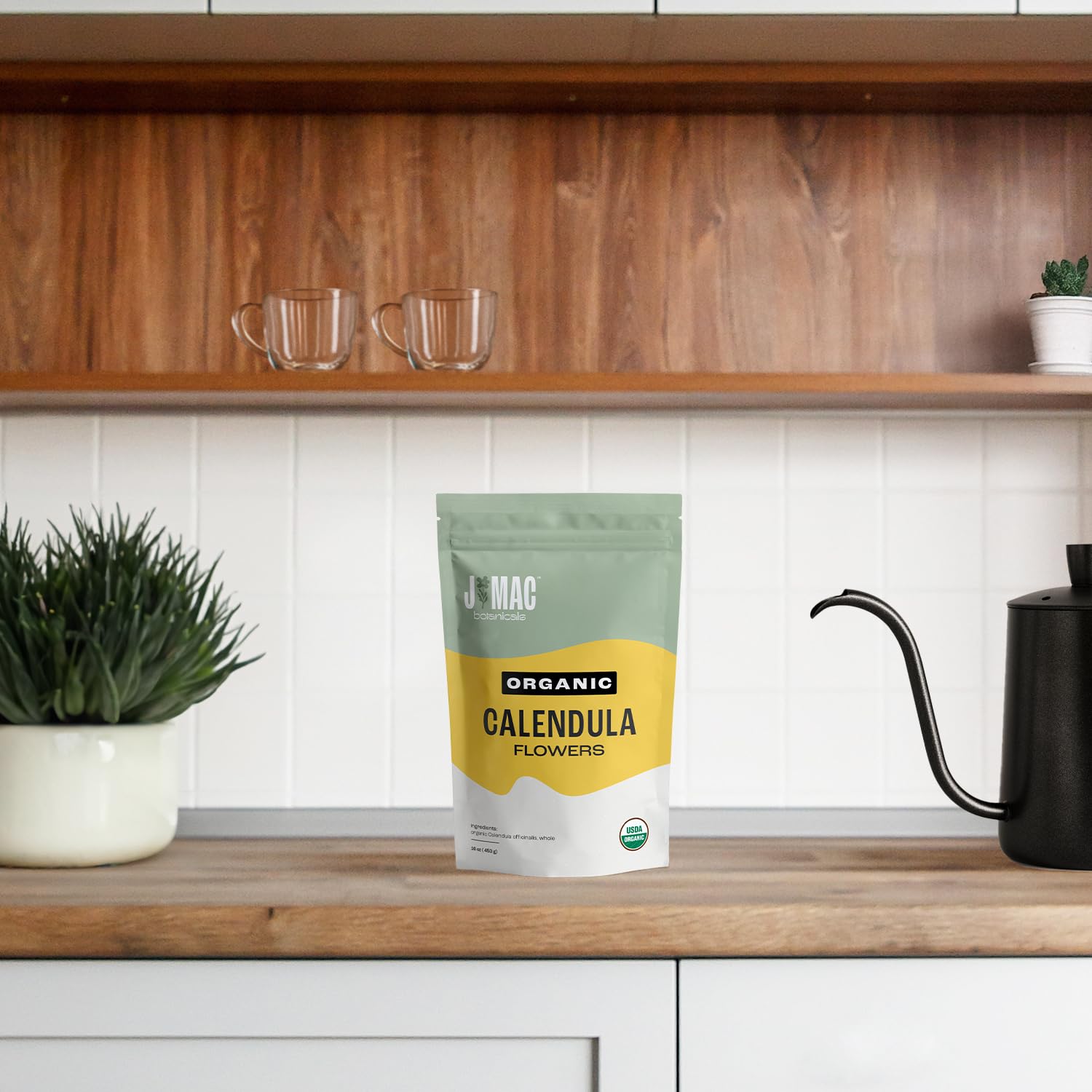 J Mac Botanicals, Organic Calendula Flower (16 ounce), whole dried flowers and petals, loose leaf tea, marigold flower, USDA Certified Organic. Great for loose leaf teas, cocktail bombs, salve