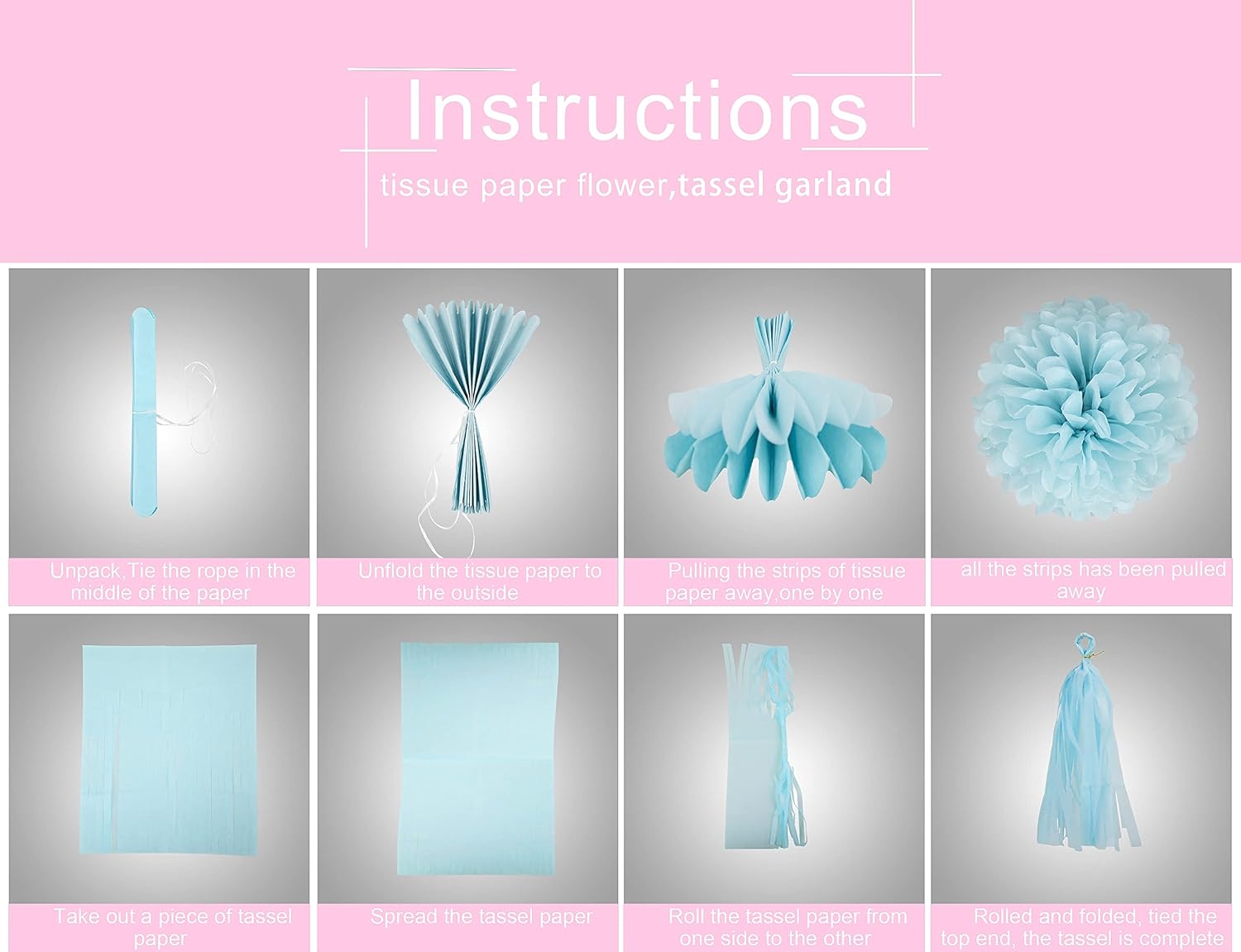 - Included Components : 6pcs tissue paper pom poms, 15pcs tissue paper tassle garland, 1pcs gender reveal banner, 1pcs party streamers 6pcs tissue paper pom poms, 15pcs tissue paper tassle garland, 1pcs gender reveal banner, 1pcs party streamers