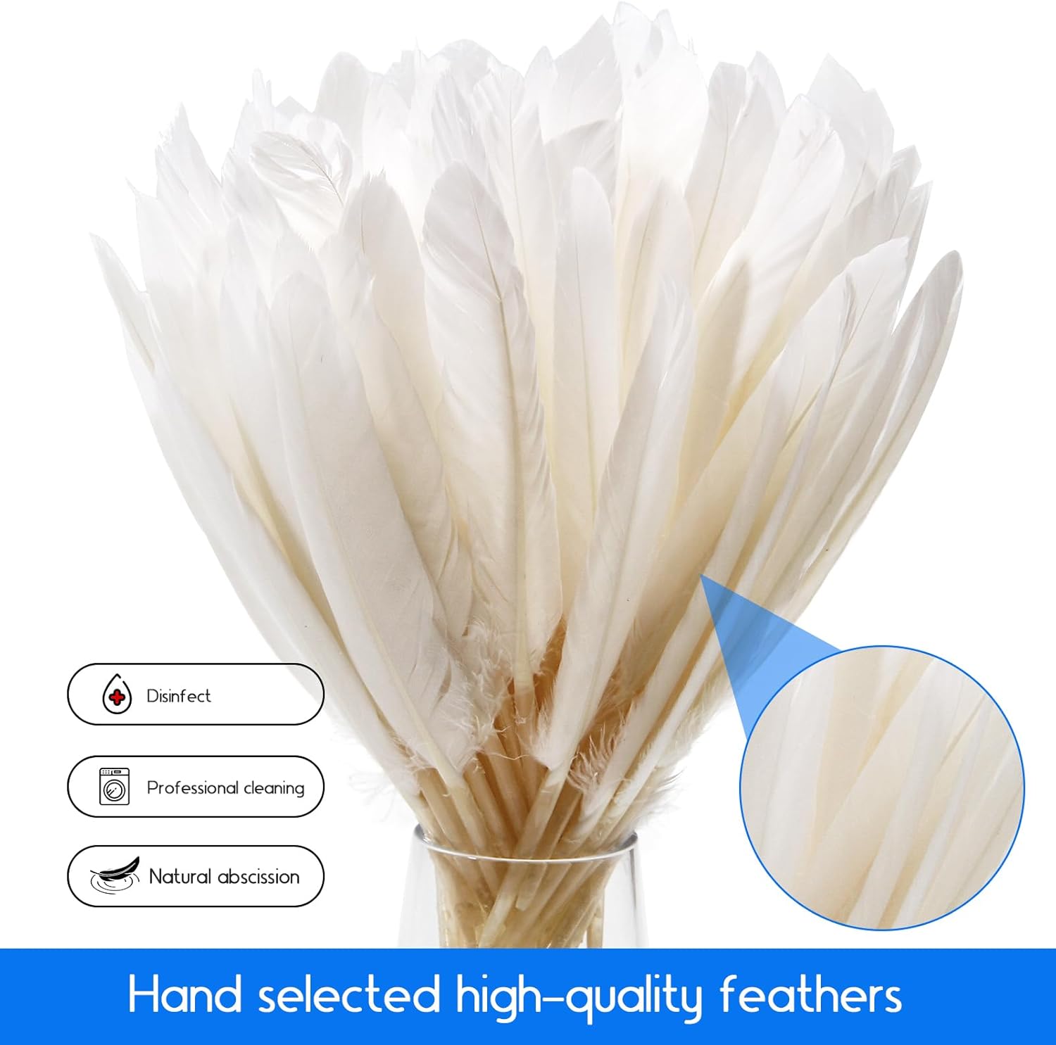 - 🦢Product Specifications:length:4-6inch,10-15cm long.120pcs/bag. Goose Feathers are soft to touch in hand. Because all feathers are purely natural, there may be slight deviations in size, length, and shape.