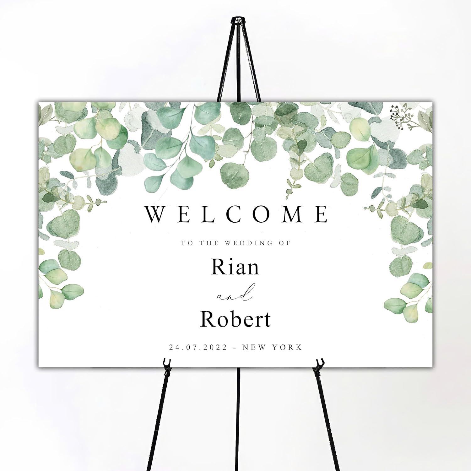 Generic Eucalyptus Wedding Welcome Sign, Minimalist, Greenery, Foliage, 12x18, 18x27, 24x36 Inch, Plastic, 4mm, Tabletop Mount