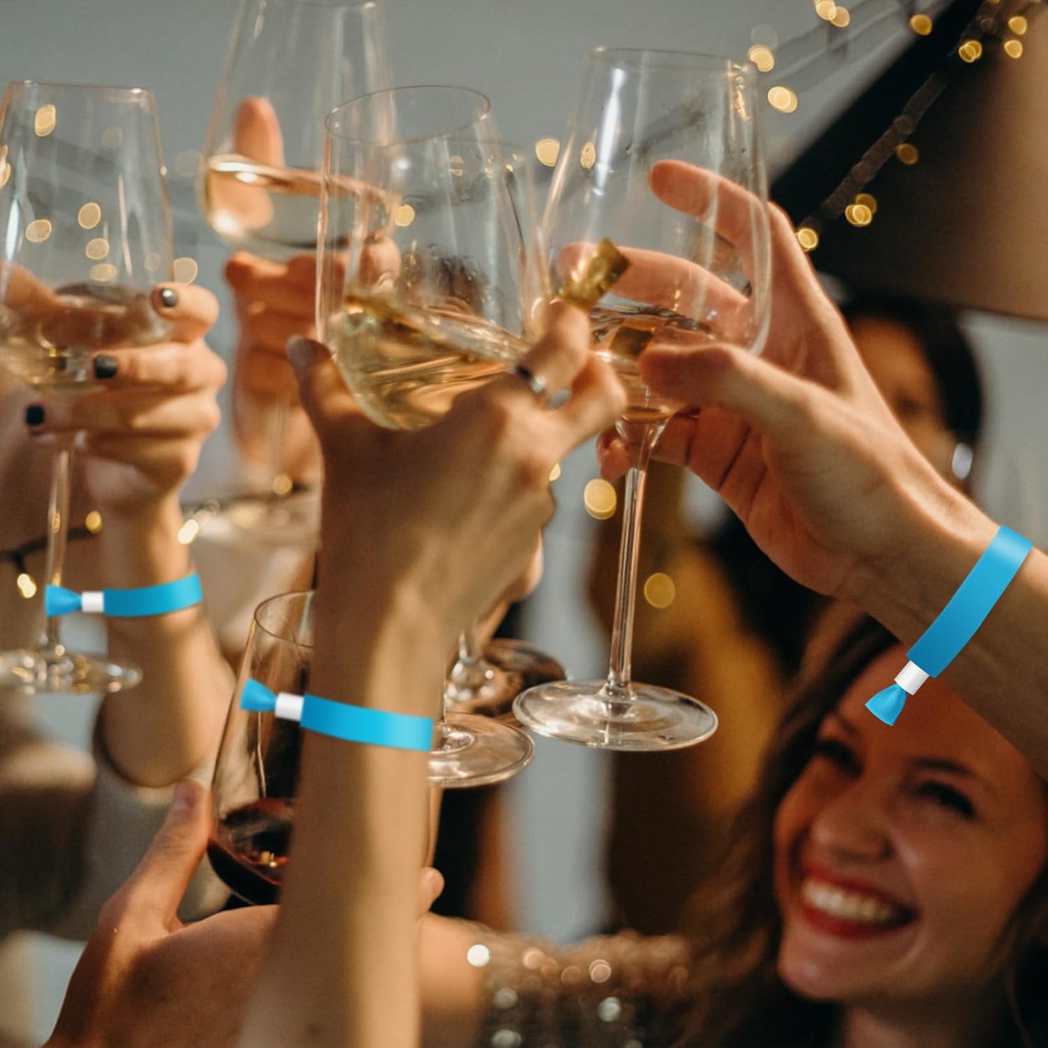- Event wristbands party: Our wristbands are comfortable and stretch resistant. We offer wristbands in sufficient quantity and multiple colors. Disposable ribbon wristbands that can be adjusted to fit your wrist size. They are soft and comfortable to wear and have a beautiful surface to meet your needs for use and sharing in various occasions.