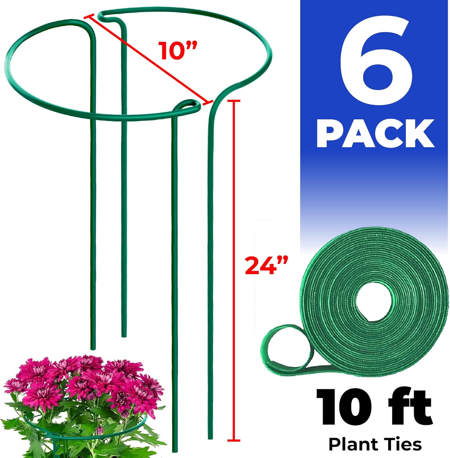 - Convenient 6-Pack: This set of 6 plant supports is perfect for all your gardening needs! Each stake measures 24” in length with a 10” diameter, making them ideal for supporting a wide variety of plants. Enjoy the flexibility and ease of use that comes with having plenty of supports on hand