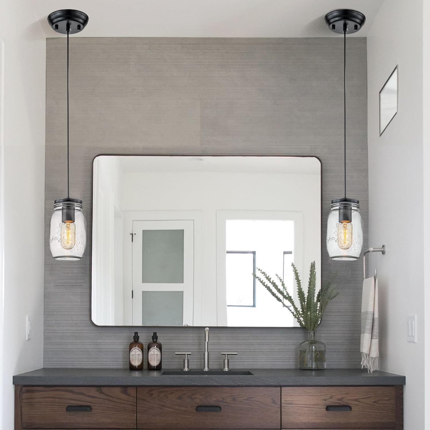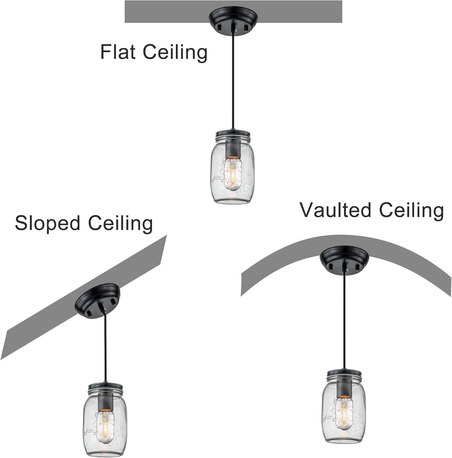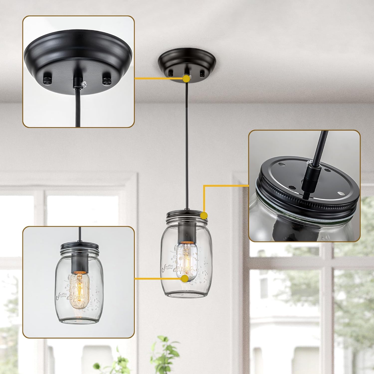 - Unique Design of Pendant Lighting for Kitchen Island: mason jar light fixture is composed of a metal ceiling mount and the mason jar glass shade, add classy and elegant beauty to any interior with its modern farmhouse look. Perfect for living room bedroom, kitchen, porch or bathroom vanity and other places for decoration required.