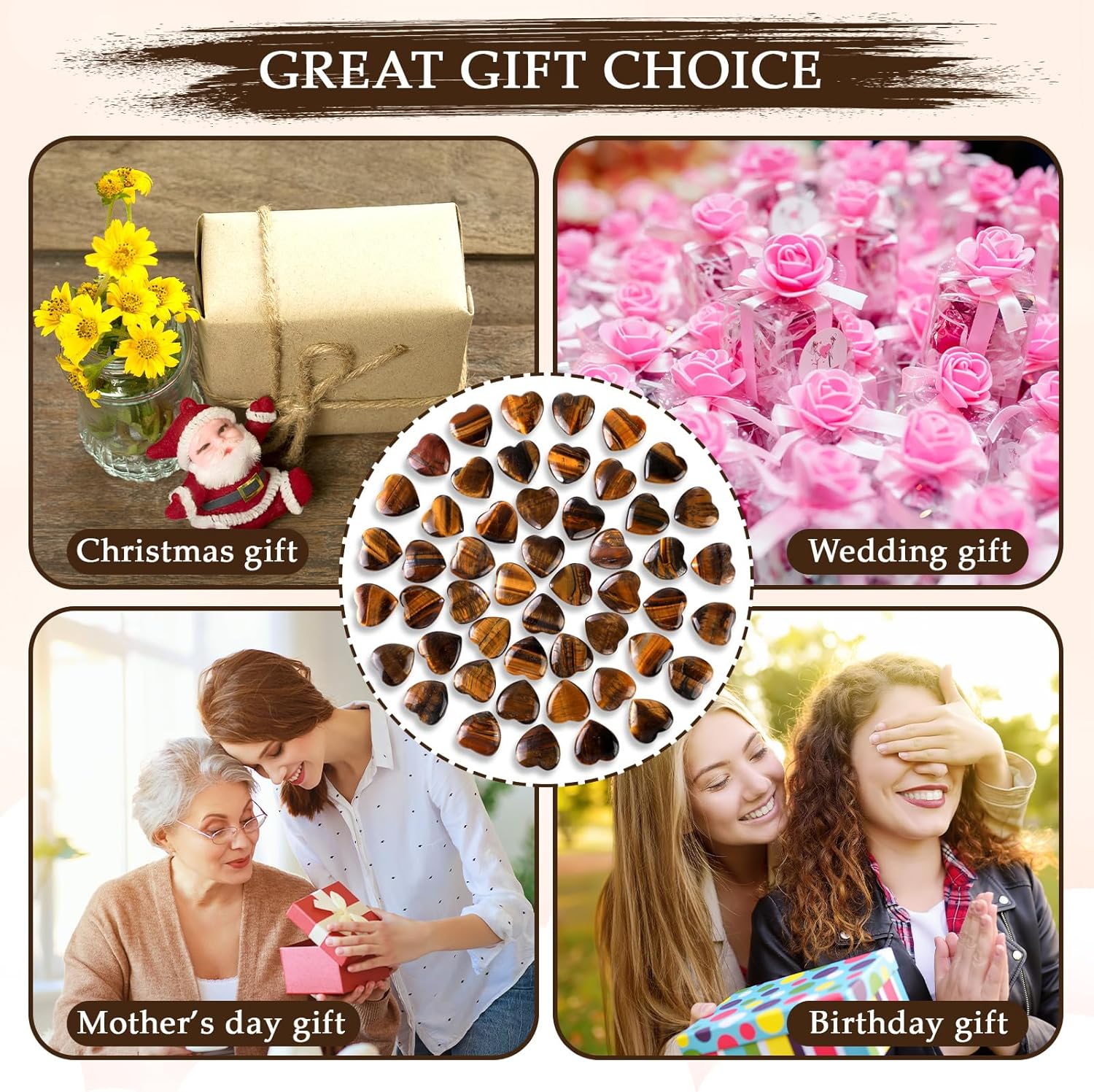 - Enough Quantity and Easy to Store: you will get a package containing 50 pieces of tigers eye hearts, the size of which is about 0.8 inches/ 2 cm, it is the proper size for most people to use; When you're attending birthday party, weddings or other important occasions, you can use it to doctorate your earring and match your dressing