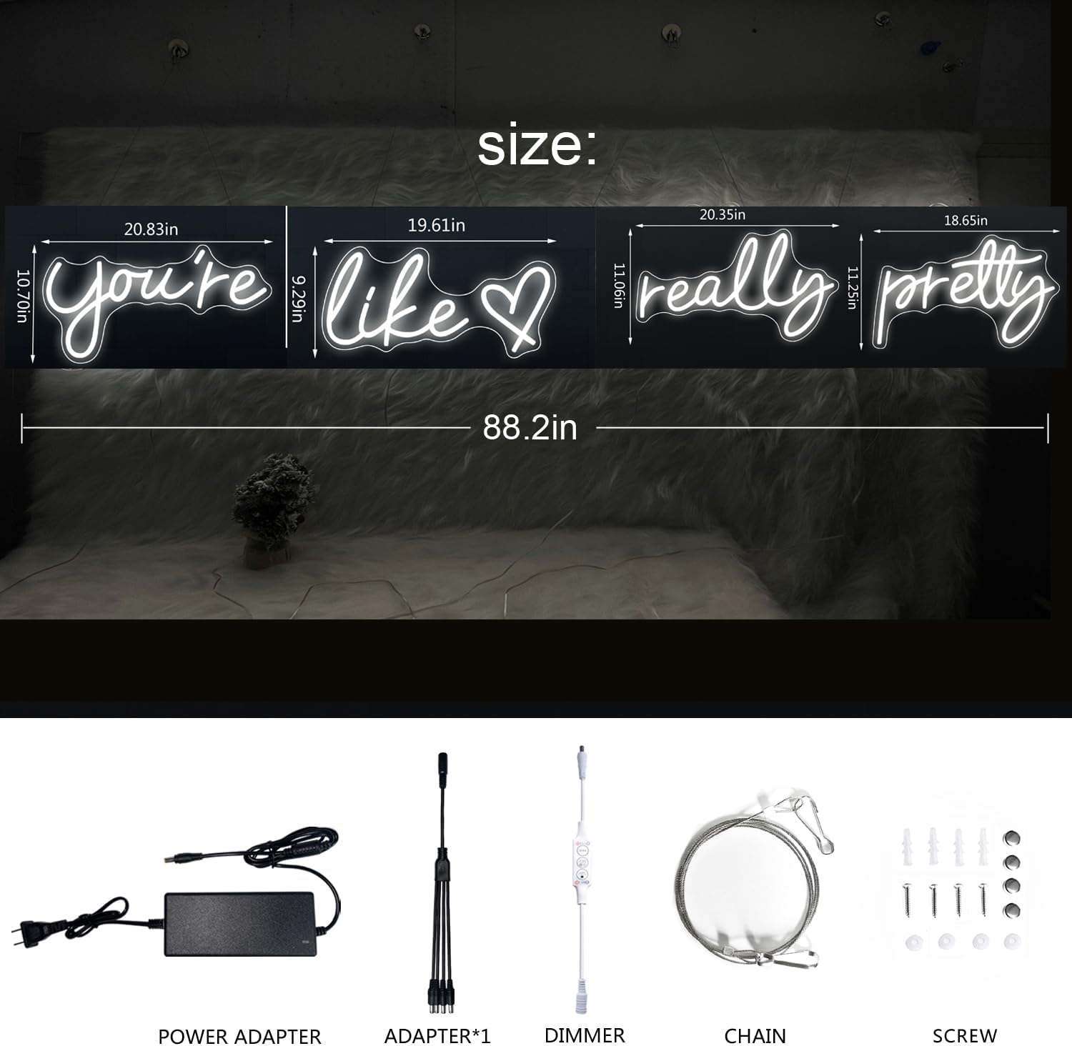 - Exquisite Art Carving Design: Our neon lights feature a stunning art carving design crafted with silicone light strips and wear-resistant acrylic backplates. The "You're Like Really Pretty" message is intricately engraved on crystal-clear acrylic. Enhanced with surrounding pink LED neon strip lighting, the engraved letters illuminate, showcasing the vibrant colors of the strip.