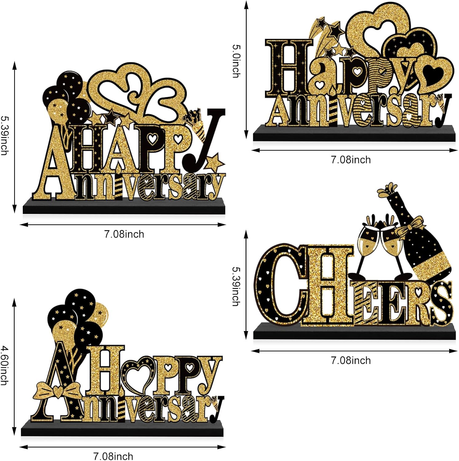 - [Happy anniversary] - Our wedding anniversary decorations table centerpieces use the classic black and gold collocation, "Happy Anniversary ", "CHEERS" and other anniversary theme copy, Add balloons, stars, hearts and other party elements to create a romantic atmosphere for your anniversary party.