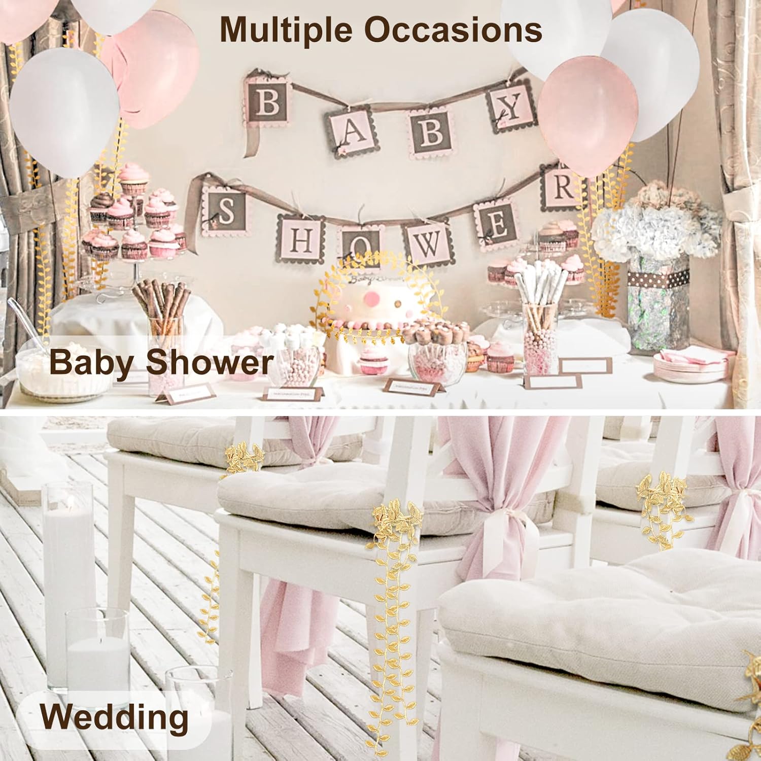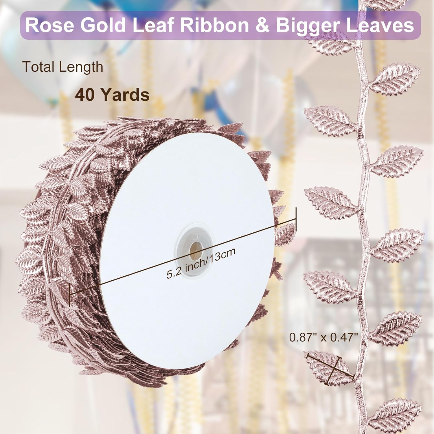 - [Fit for Multiple Occasions]: The total length of the ribbon is 40 Yards, and each leaf is 0.87"(L) x 0.47"(W). It's long enough for the needs of most occasions decoration, and you are free to cut it according to your needs. Great for baby showers, wedding, birthday party, Greek party, Christmas, Halloween, Thanksgiving, Easter, etc.