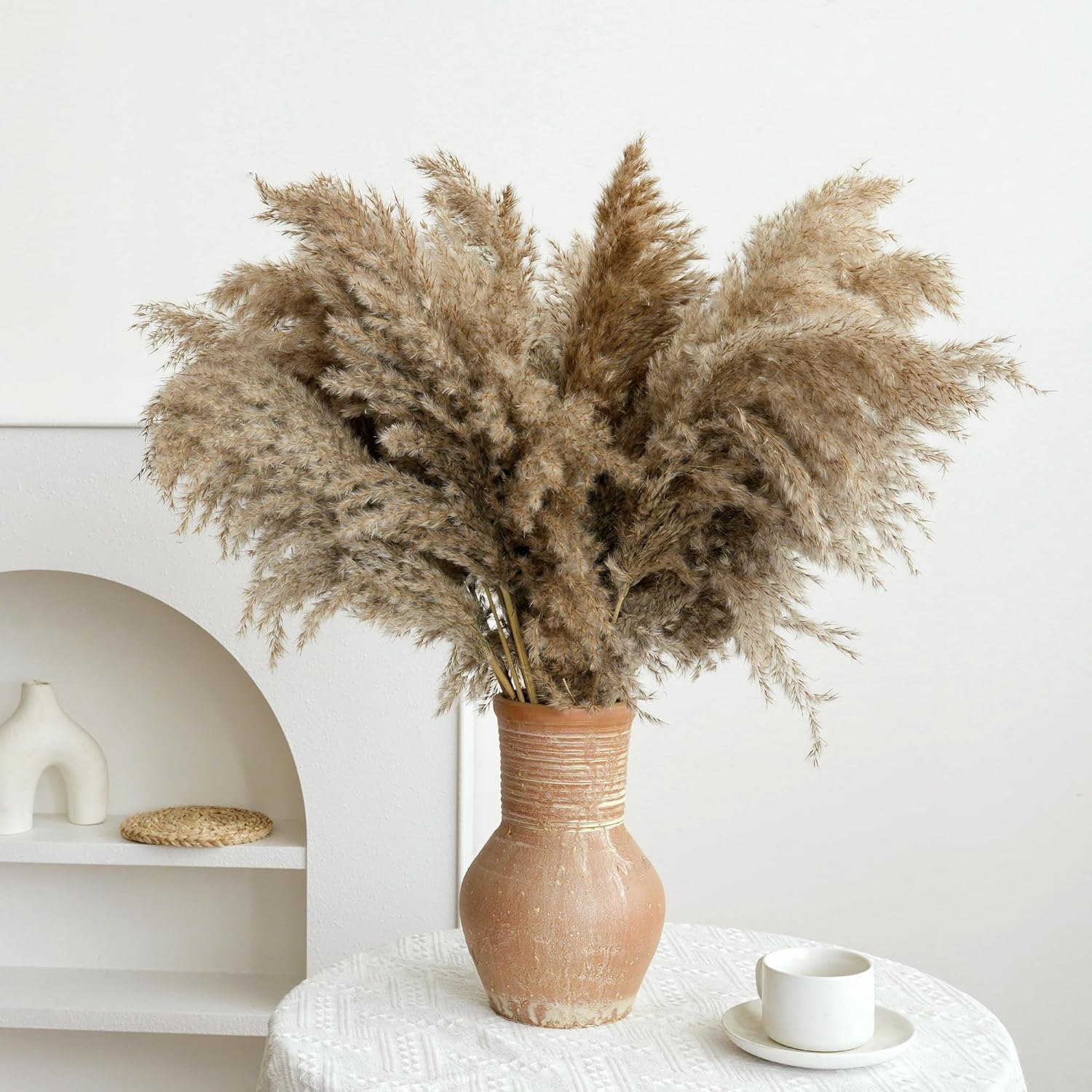 - Boho Room Decor: Pampas Grass is an ideal fall vase filler, providing strong boho decor elements. It adds a real and elegant touch to your boho home decor, coffee table decor, boho wedding decor, bridal pampas grass wreaths, table centerpieces for dining rooms, dried baby's breath arrangements, boho baby shower decorations, boho party decorations, and boho kitchen decor.