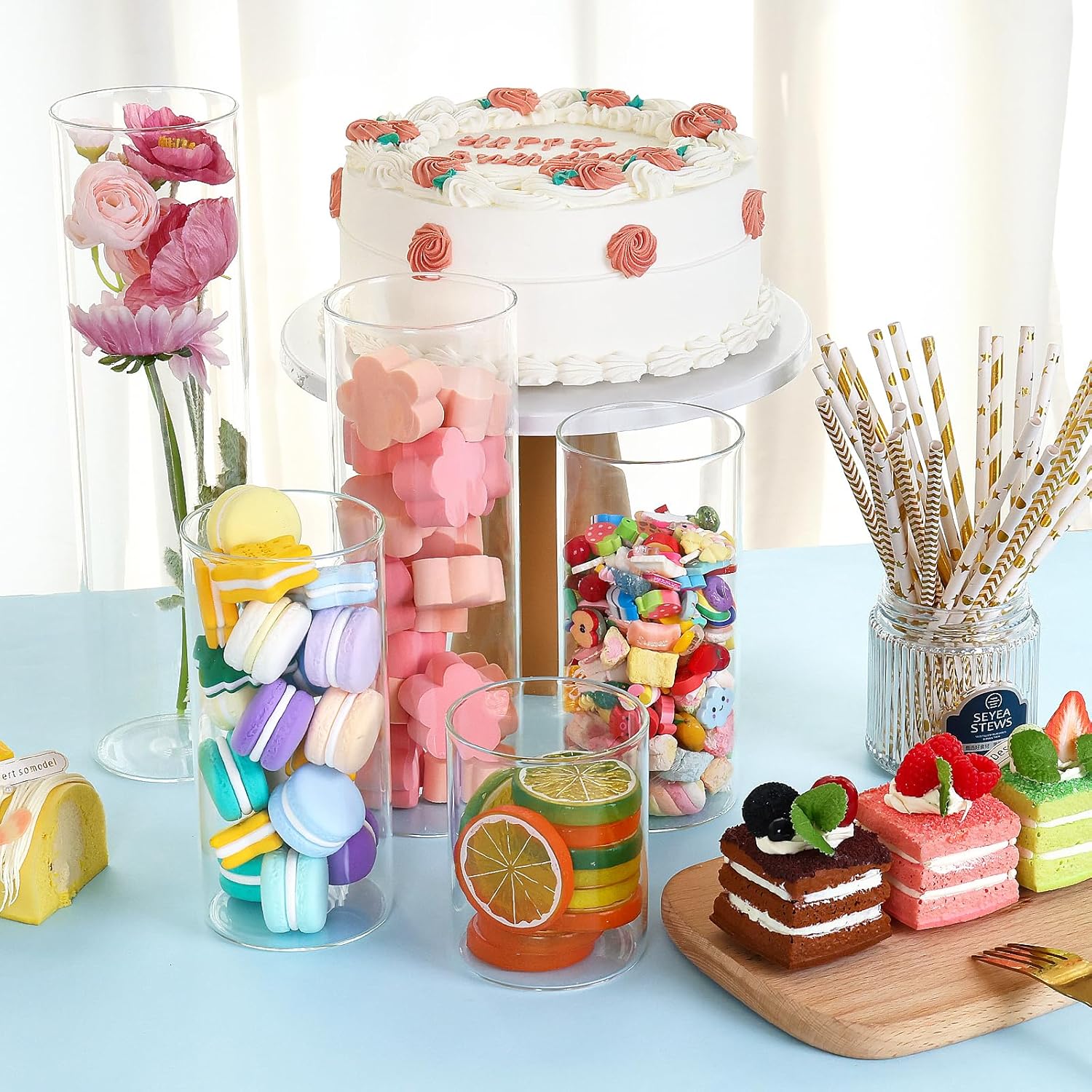 CEWOR 12pcs Glass Cylinder Vase 4, 6.8, 9, 11.8 Inch Glass Candle Holder Clear Vases for Centerpieces Tall Flower Vase for Wedding Home Decor Party 4 Different Sizes