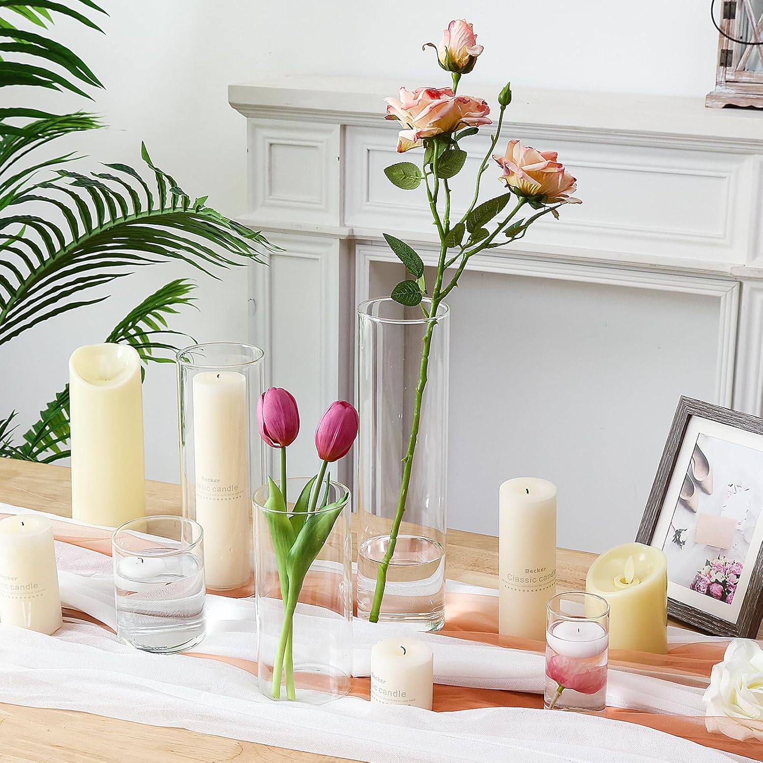 - Multiple Uses: The clear glass vase is suitable for fresh flower arrangements, dried flowers, floating candles, succulents, etc. It can be used as a pillar candle holder, floating candle holder, and vase, which can hold liquids without leaking.