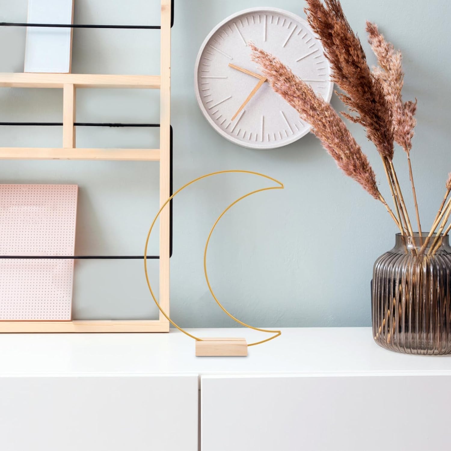 Dining Table Decor 10 Sets Metal Floral Hoop Moon Shaped Metal Wreath Ring Stand with Wood Holder Centerpiece Table Decor for DIY Xmas Wedding Table Decor Flower Garlands (Moon,26x20cm