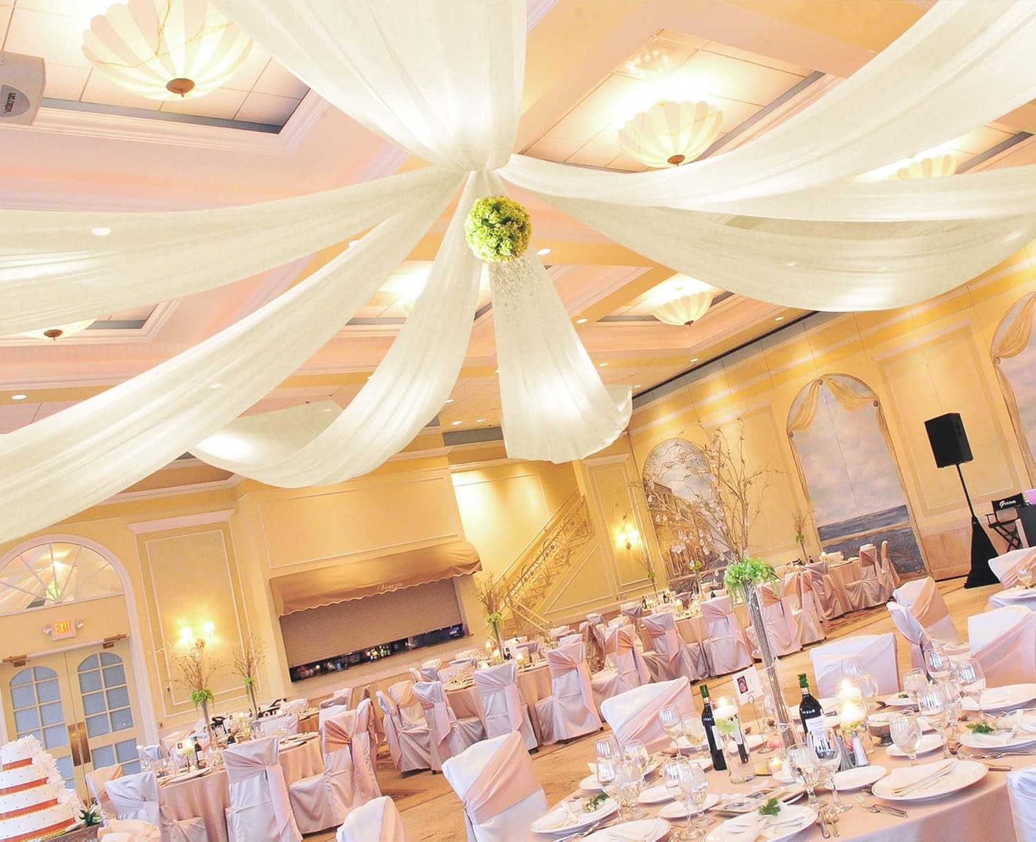 - 👑【Premium Ceiling Drapes Fabric】This wedding ceiling backdrop is made from premium cheesecloth material that is soft to the touch, breathable and lightweight. Easy draping or hanging straight, good vertical sense and durable. Paired with romantic cheese cloth fabric, you can easily create a romantic event atmosphere.