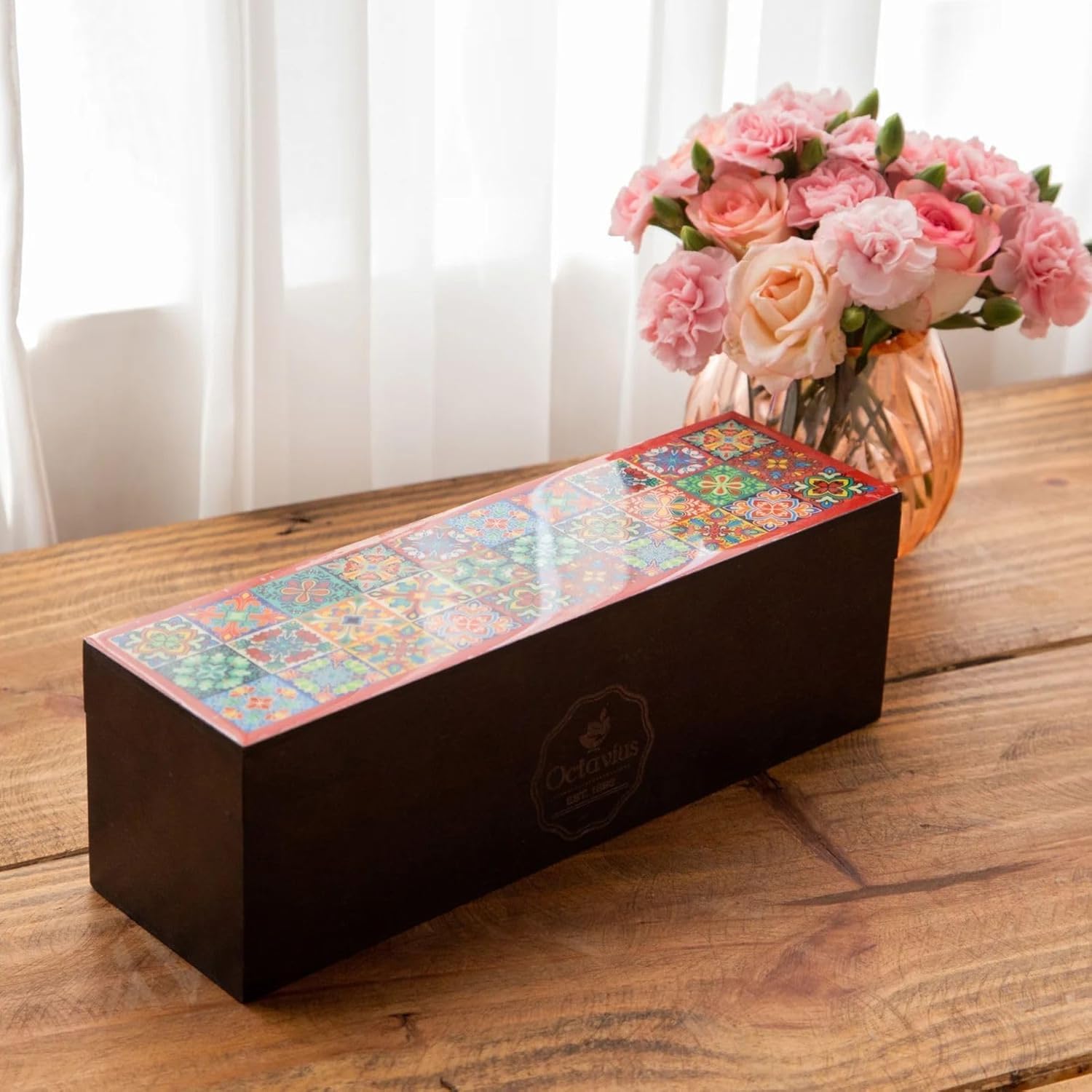 Octavius - Assorted Tea Variety Pack in Tile Motif Design Wooden Box | 6 Flavors, 60 Tea Bags | Black & Green Tea | Tea Gifts for Women & Men