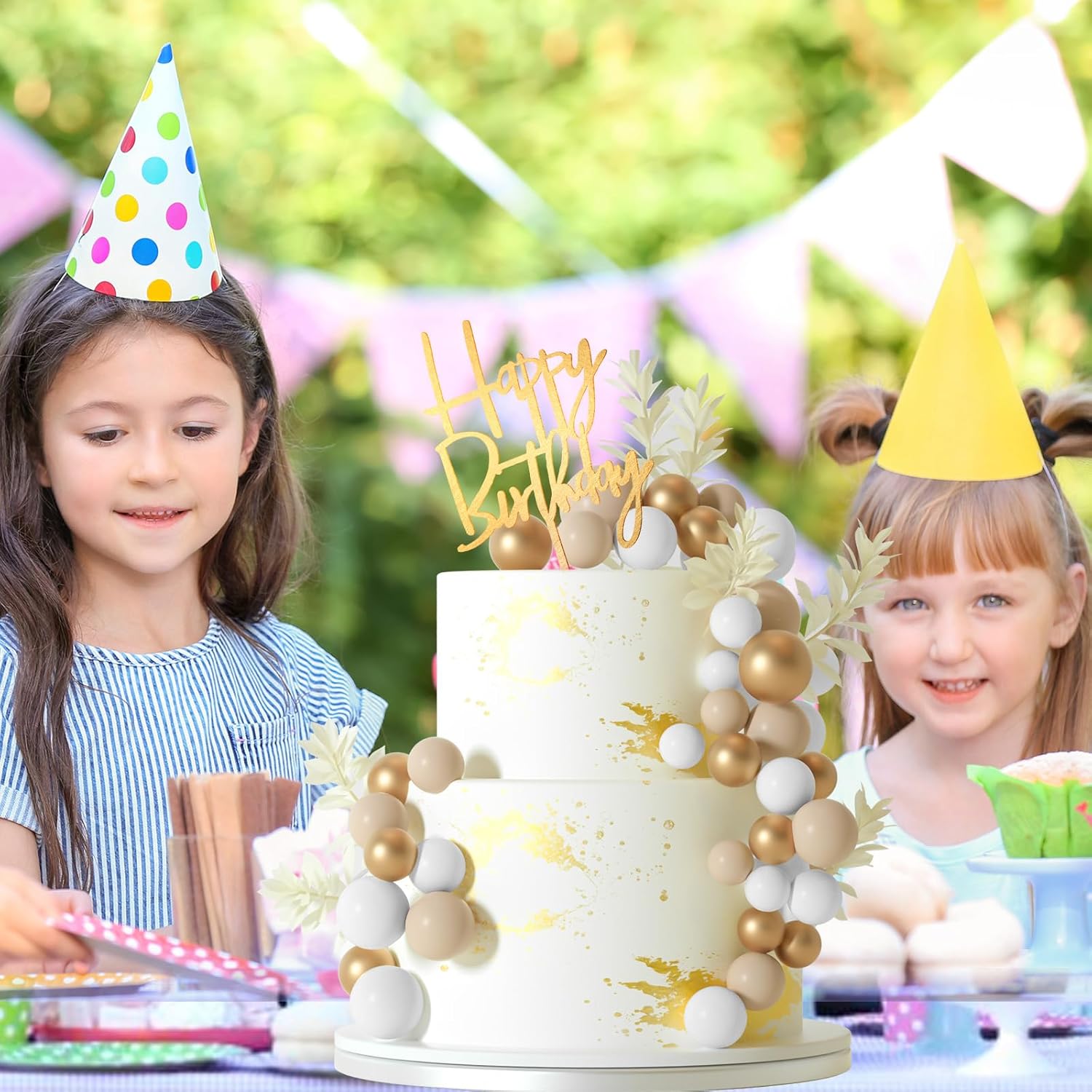 - Package included : 10pcs white grass cake toppers, 1pc happy birthday cake topper, 14pcs khaki balls, 14pcs gold balls, 14pcs white balls.