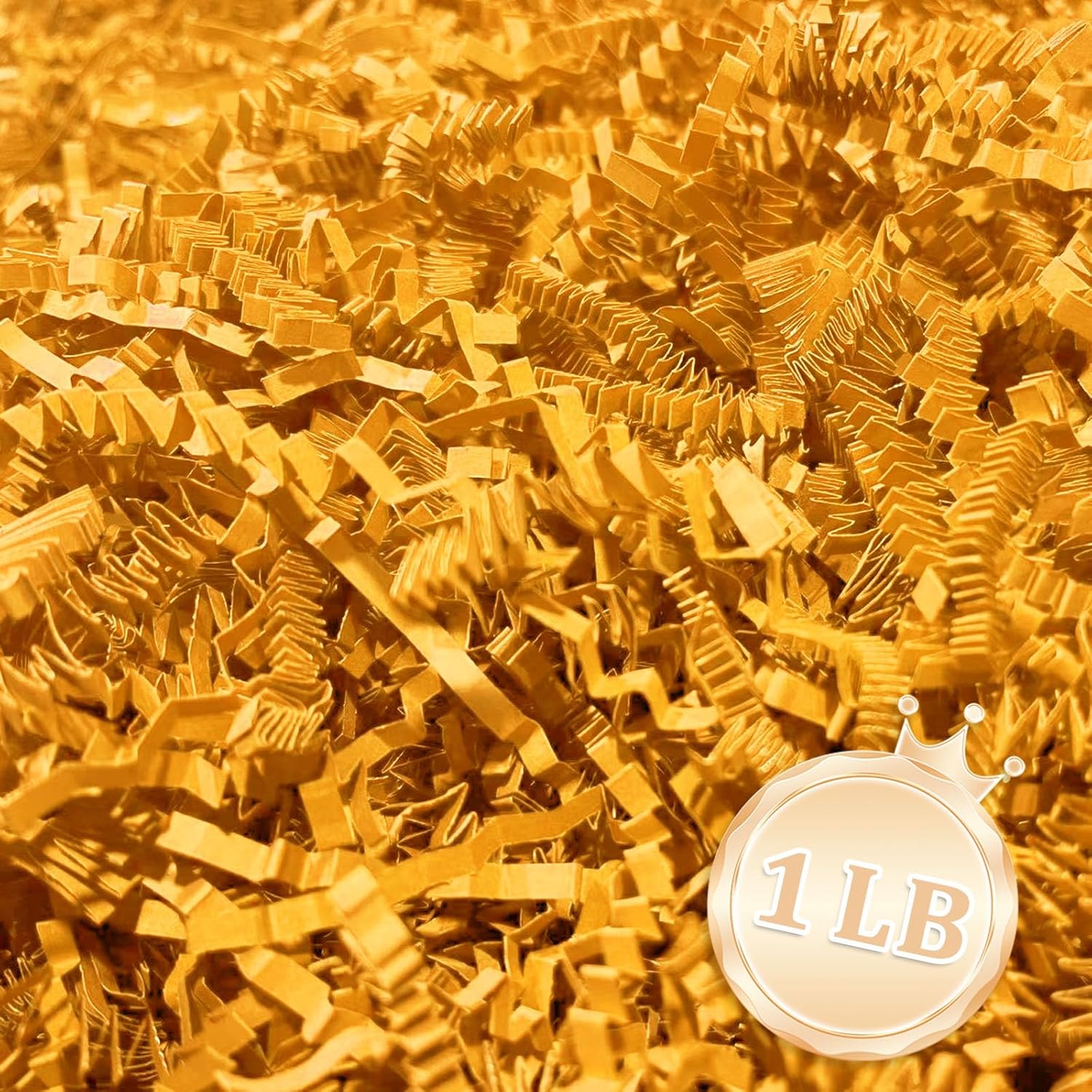 - 【Crinkle Cut Paper Shred】Display your products with fun and colorful Crinkle Cut Paper to create a memorable gift-giving experience with your tasteful choice of gift-wrapping fillers. Ensuring your gifts are beautifully presented. With 1 LB golden of crinkle cut paper shred filler, you'll have plenty to fill those extra spaces in your packages, is suitably provides maximum protection for your gifts.
