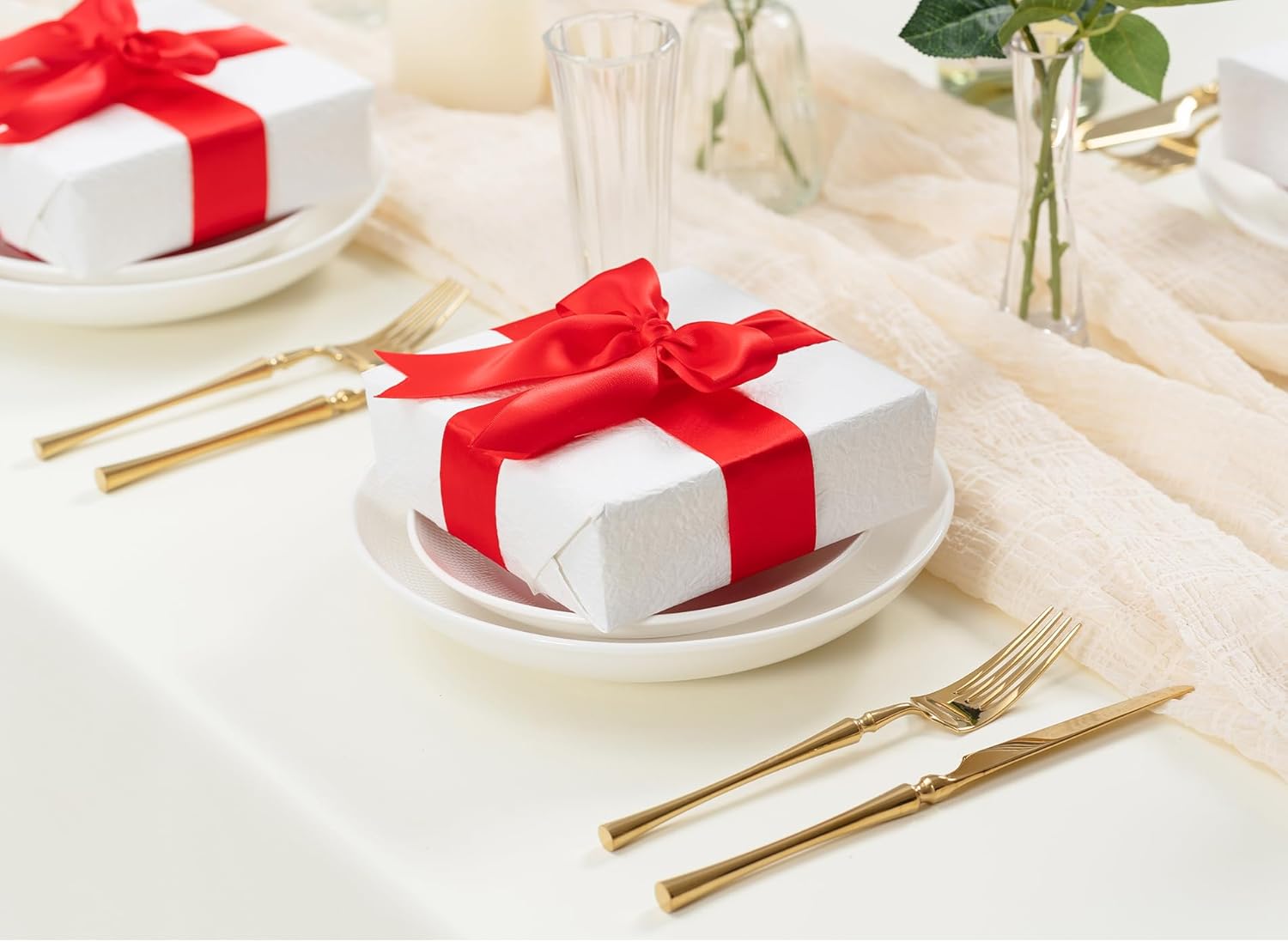Red Satin Ribbon 1-1/2 Inch x 50 Yards Double-Faced Ribbons for Christmas Gift Wrapping Flower Bouquet Wedding Paper Bows Invitations Crafts