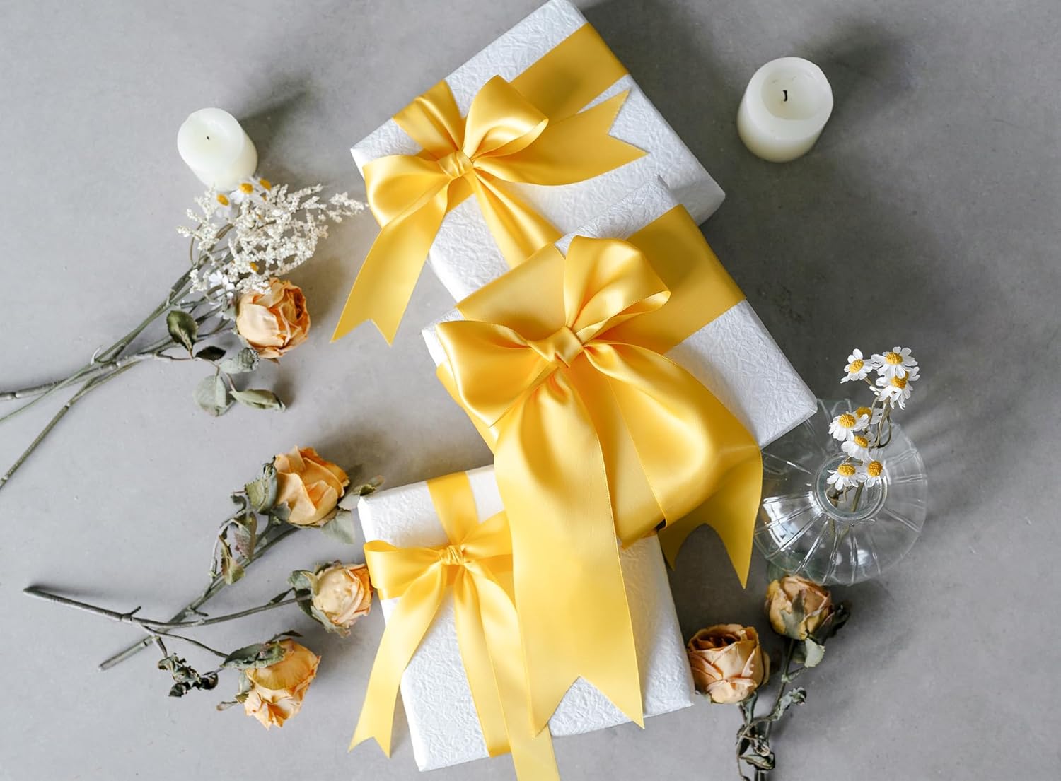 Yellow Ribbon 2.5 Inch Double-Faced Satin Ribbons 25 Yards for Crafts Gift Wrapping Flower Bouquet Wedding Paper Holiday Decorating