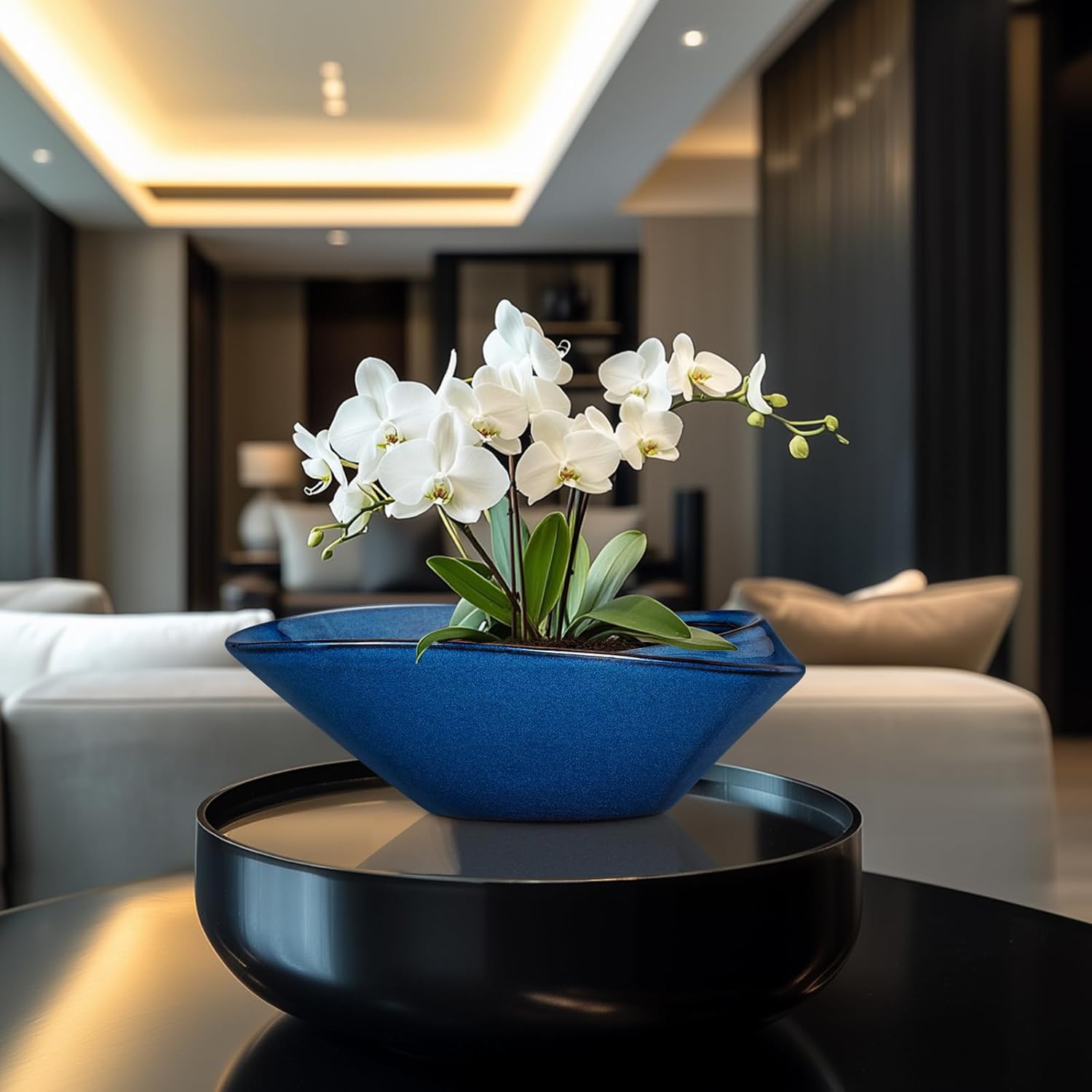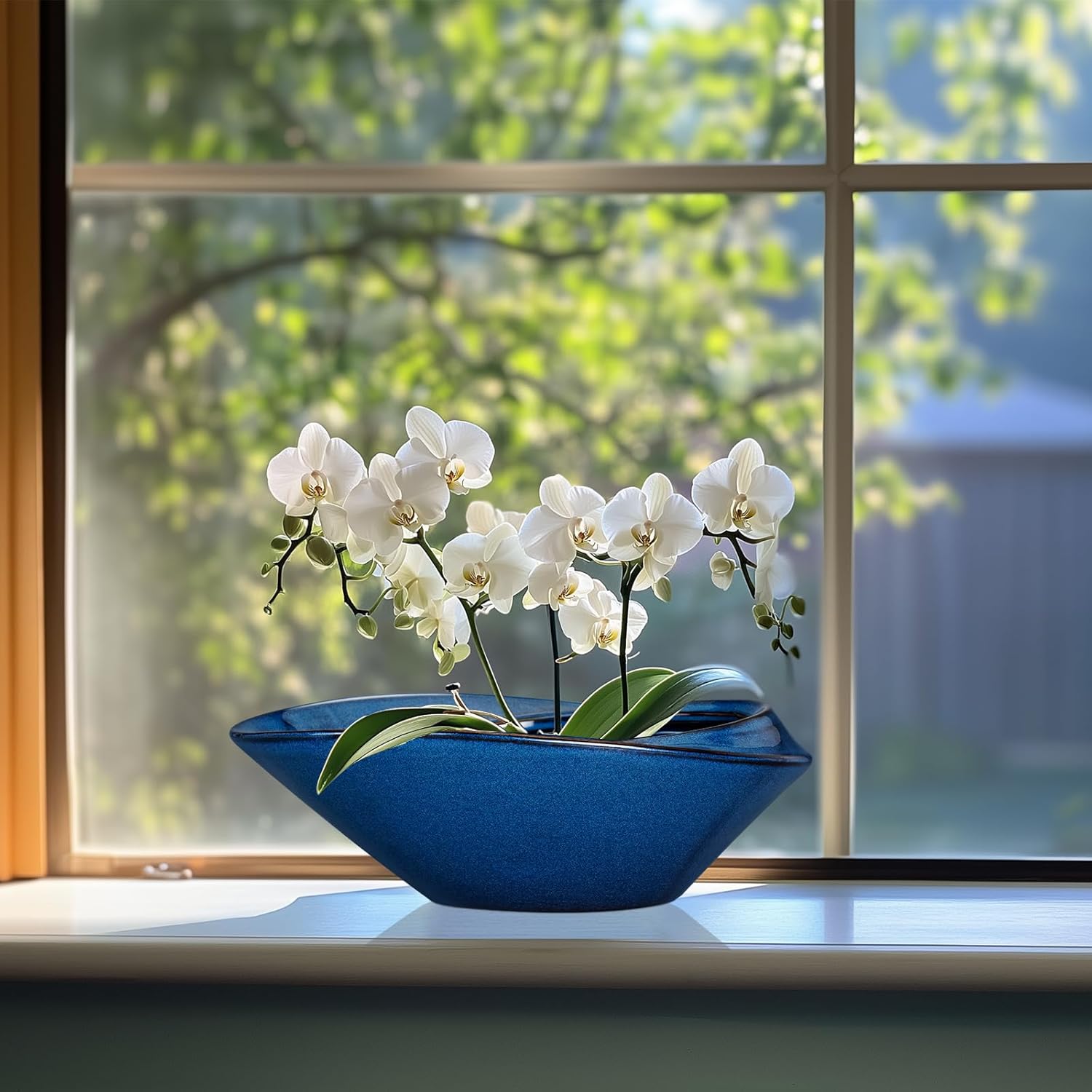 - 12 Inch Planter for Home Decor: The modern style large light blue bonsai pot for plants that can be placed on a table, living room, balcony, patio, garden, and other places