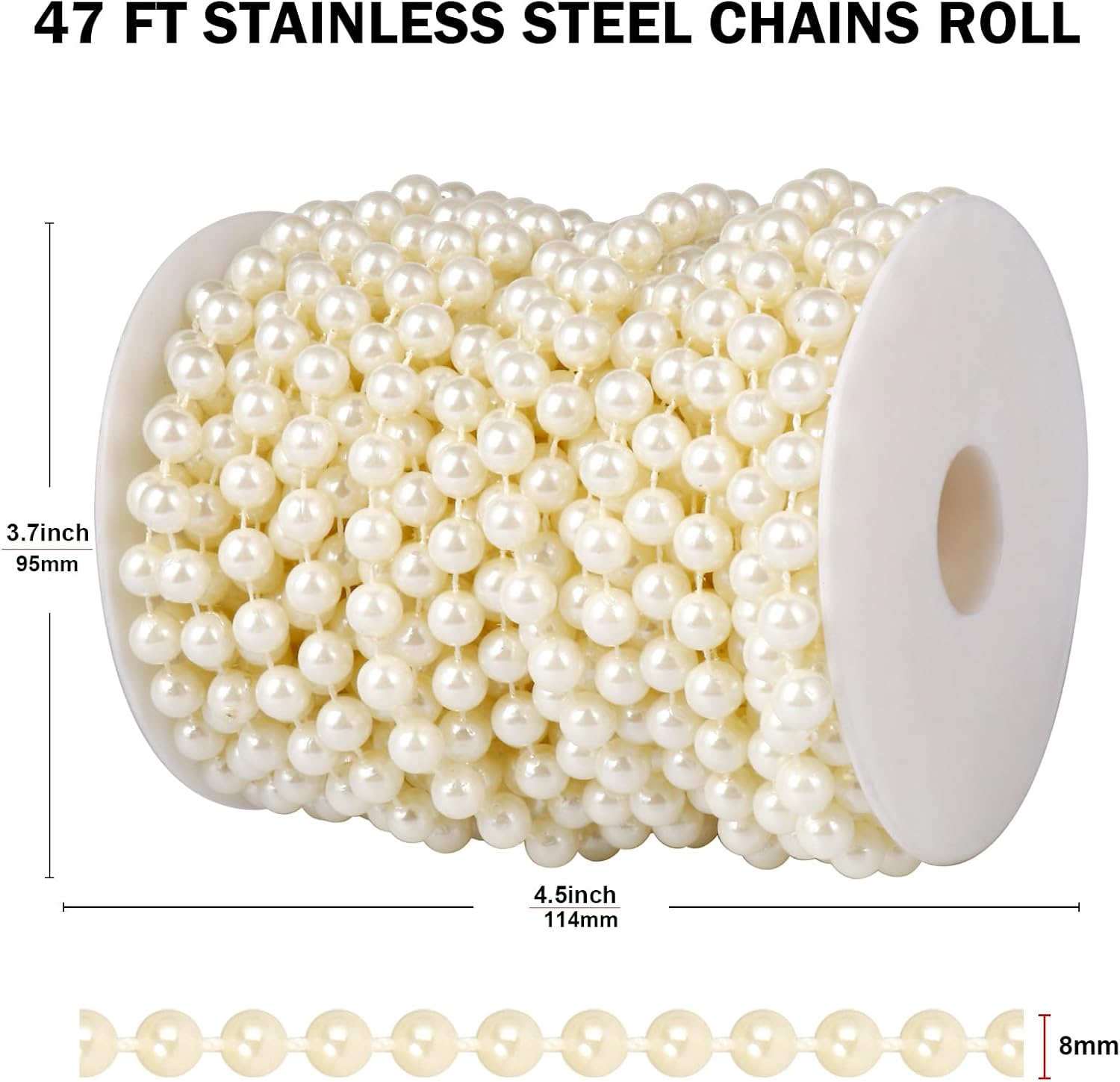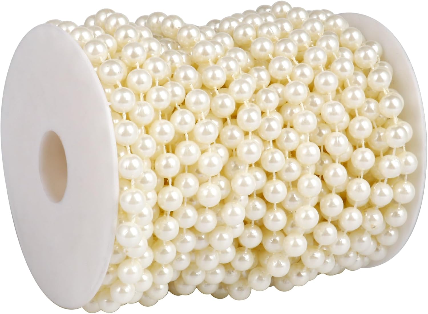 - ROLL SET: 8mm diameter pearl beads, 47 feet (14.4 meters) ivory color pearl beads garland roll spool.