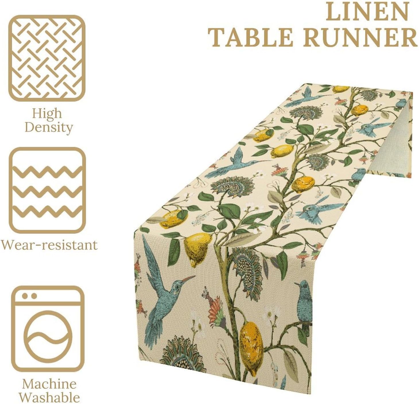 Table Runner with Flowers and Birds, Spring Plant Flowers Table Decoration Linen Table Runner Family Party Party Decorations 13x120 Inches