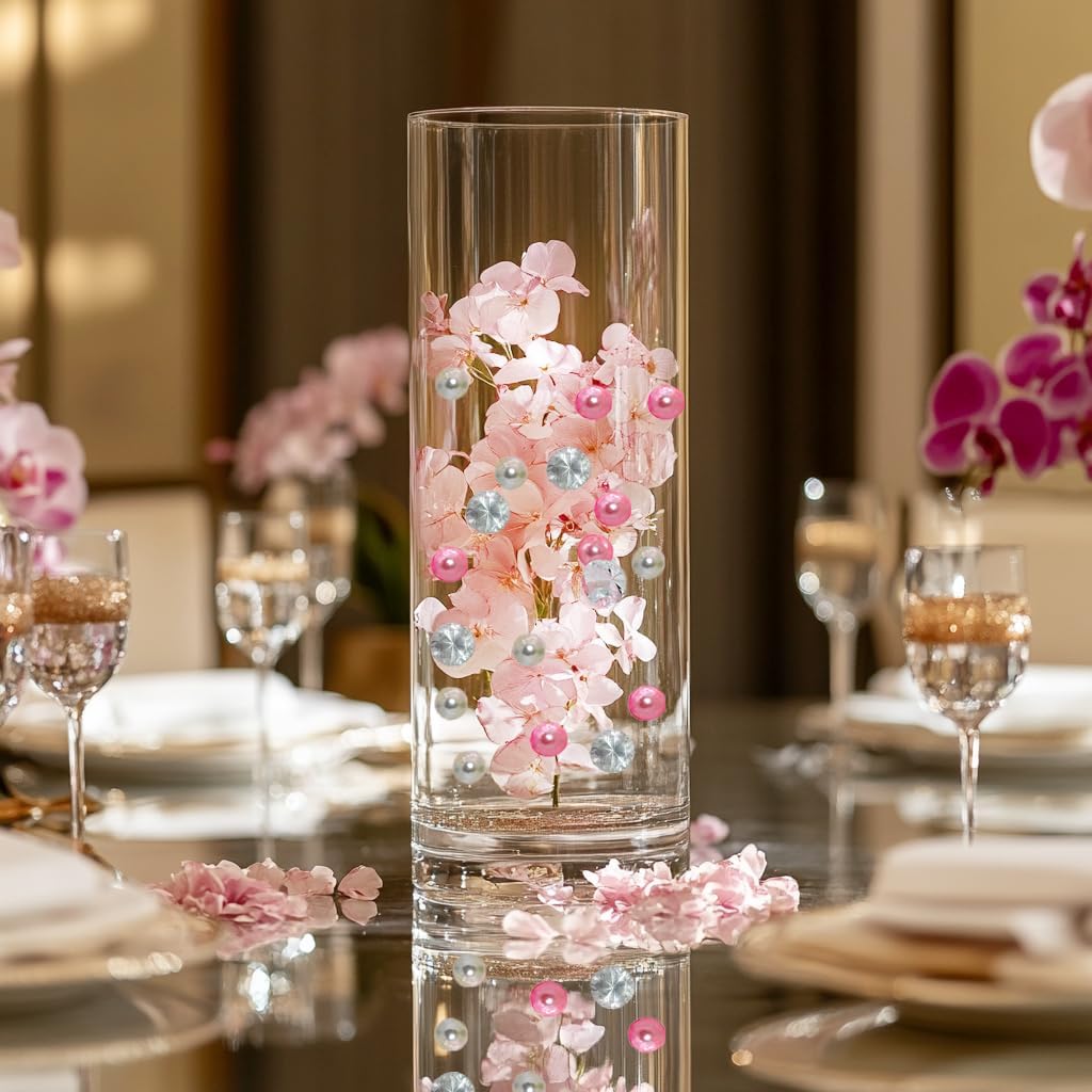 HappyFiller 1075 PCS Floating Pearl Beads,Gems for Centerpiece,Vase Filler Fink Faux Pearls Fake Crystal Diamonds,Table Candles Party Wedding Decoration 14 OZ