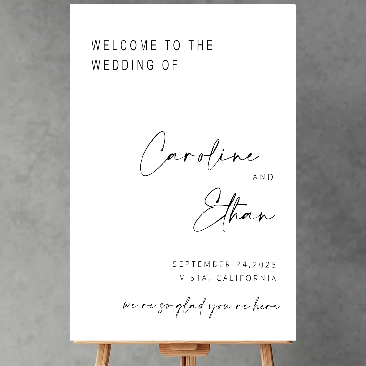 Generic Personalized Wedding Welcome Sign, 18x27 inches, Plastic, Modern Style, Wedding Event Guestbook
