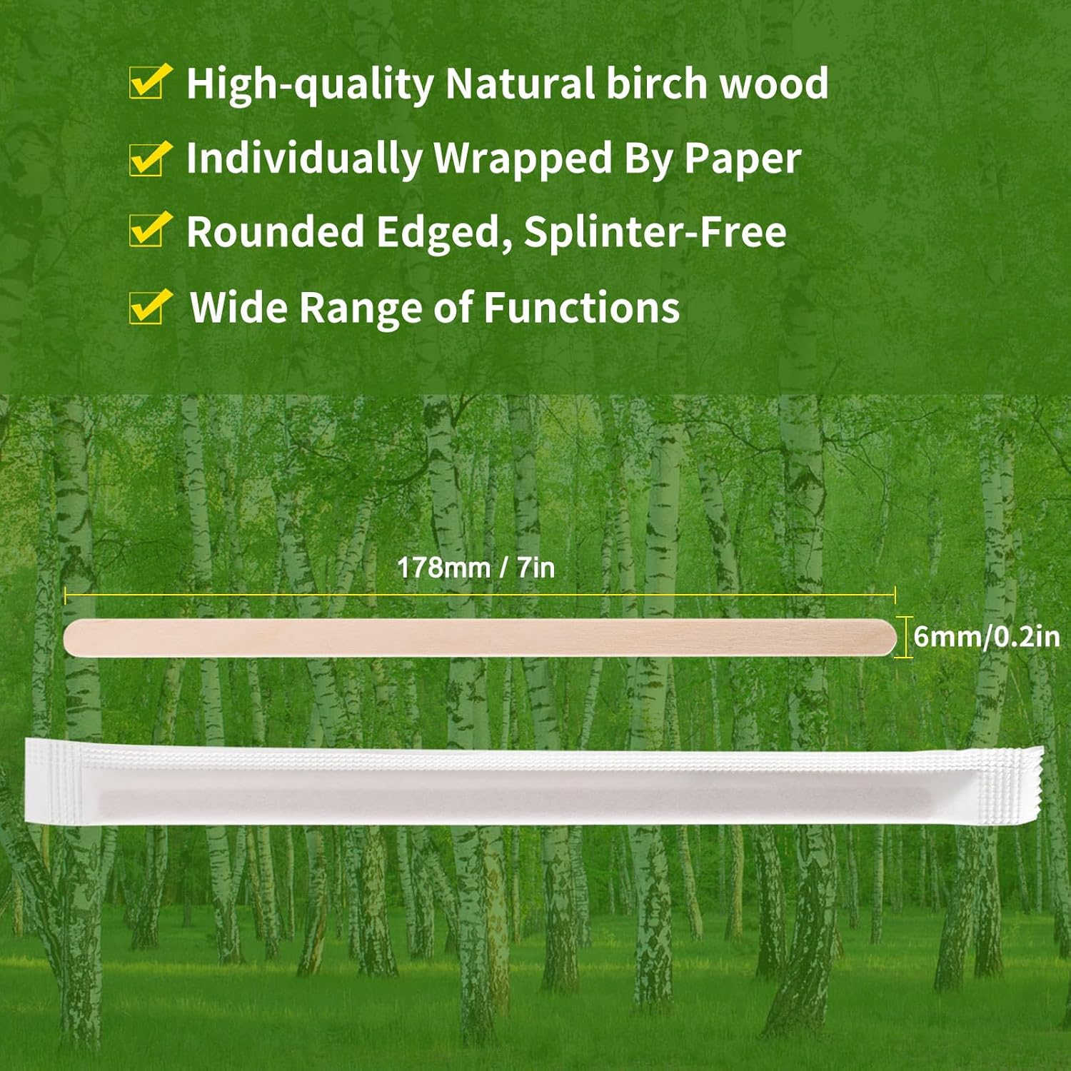- Safety and Health - Disposable individually wrapped wooden coffee stir sticks made natural birch, that is a plentiful renewable resource, clean and healthy. These coffee stir sticks healthy and safe for children, adults, and pets.