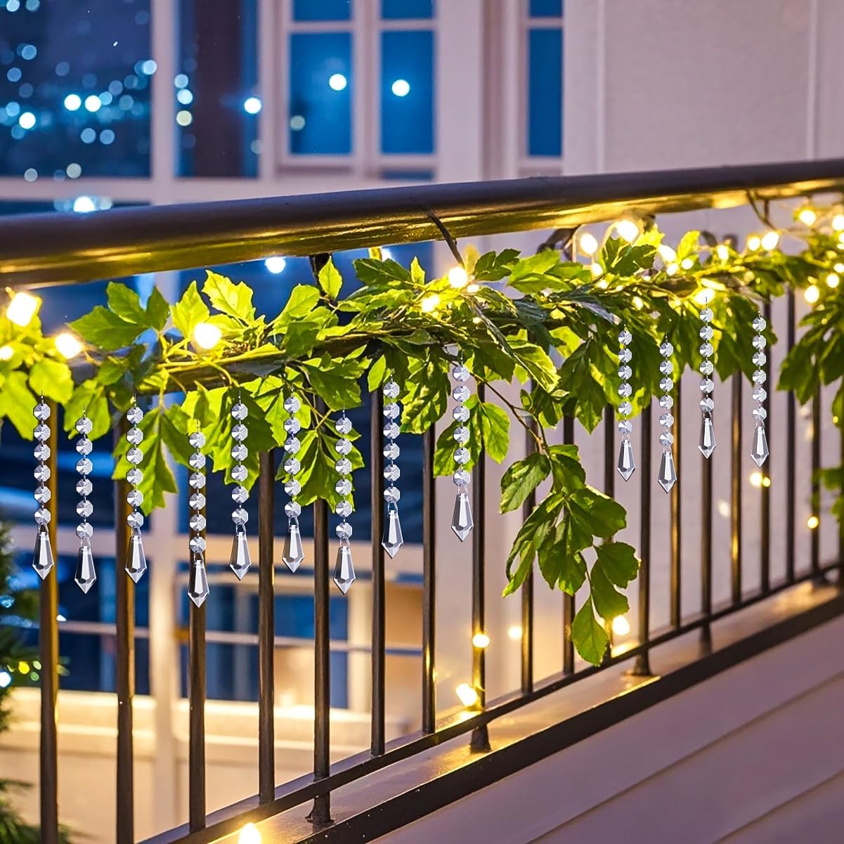 - Elegant Hanging Ornaments: Designed with teardrop acrylic prisms, combined with clear plastic icicle drops adorned with crystal beads, creating a festive and romantic ambiance. Ideal for decorating Christmas trees, centerpieces, chandeliers, windows, and various corners of your home.
