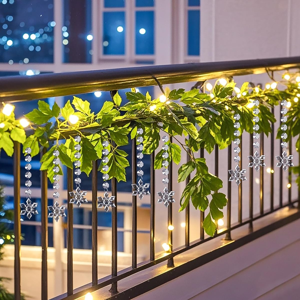 - Elegant Hanging Ornaments: Designed with teardrop acrylic prisms, combined with clear plastic icicle drops adorned with crystal beads, creating a festive and romantic ambiance. Ideal for decorating Christmas trees, centerpieces, chandeliers, windows, and various corners of your home.