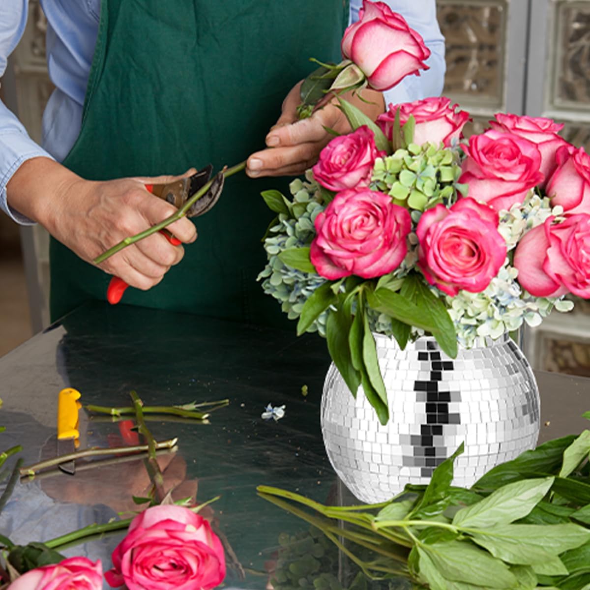 - Charming Decor:Transform any space with our glamorous silver and reflective glass mirror design disco ball vase. Whether it's a living room, office or dining room table, these vases add glamor and charm to any place, creating a captivating ambiance that will turn heads.
